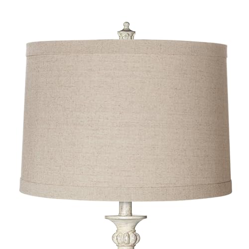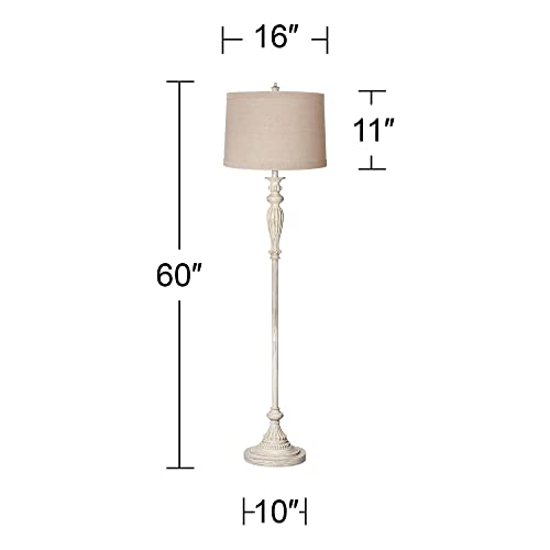 360 Lighting Traditional Vintage Shabby Chic Standing Floor Lamp 60" Tall Antique White Washed Natural Linen Fabric Tapered Drum Shade Decor for Living Room Reading House Bedroom Home