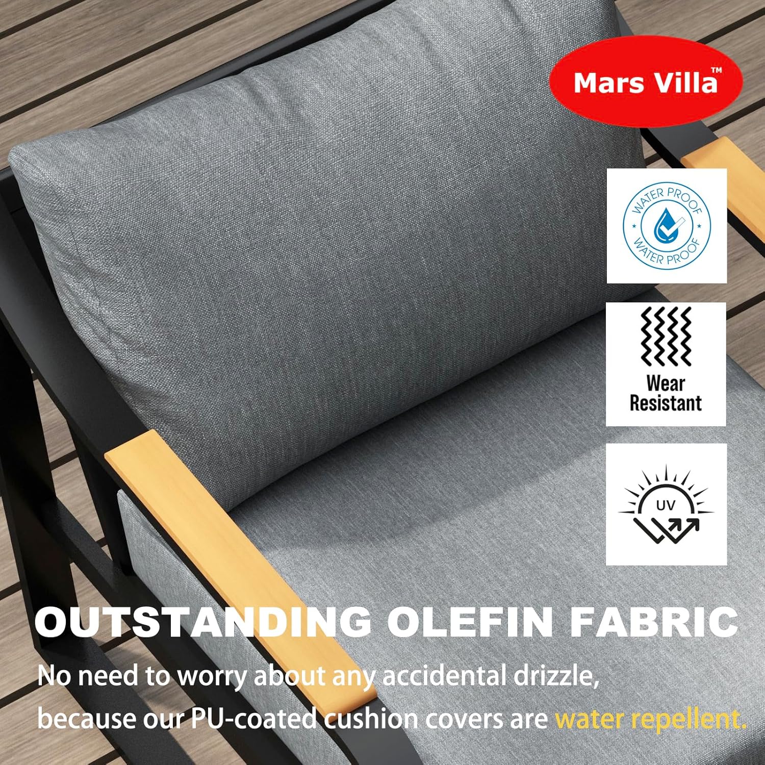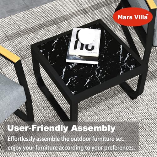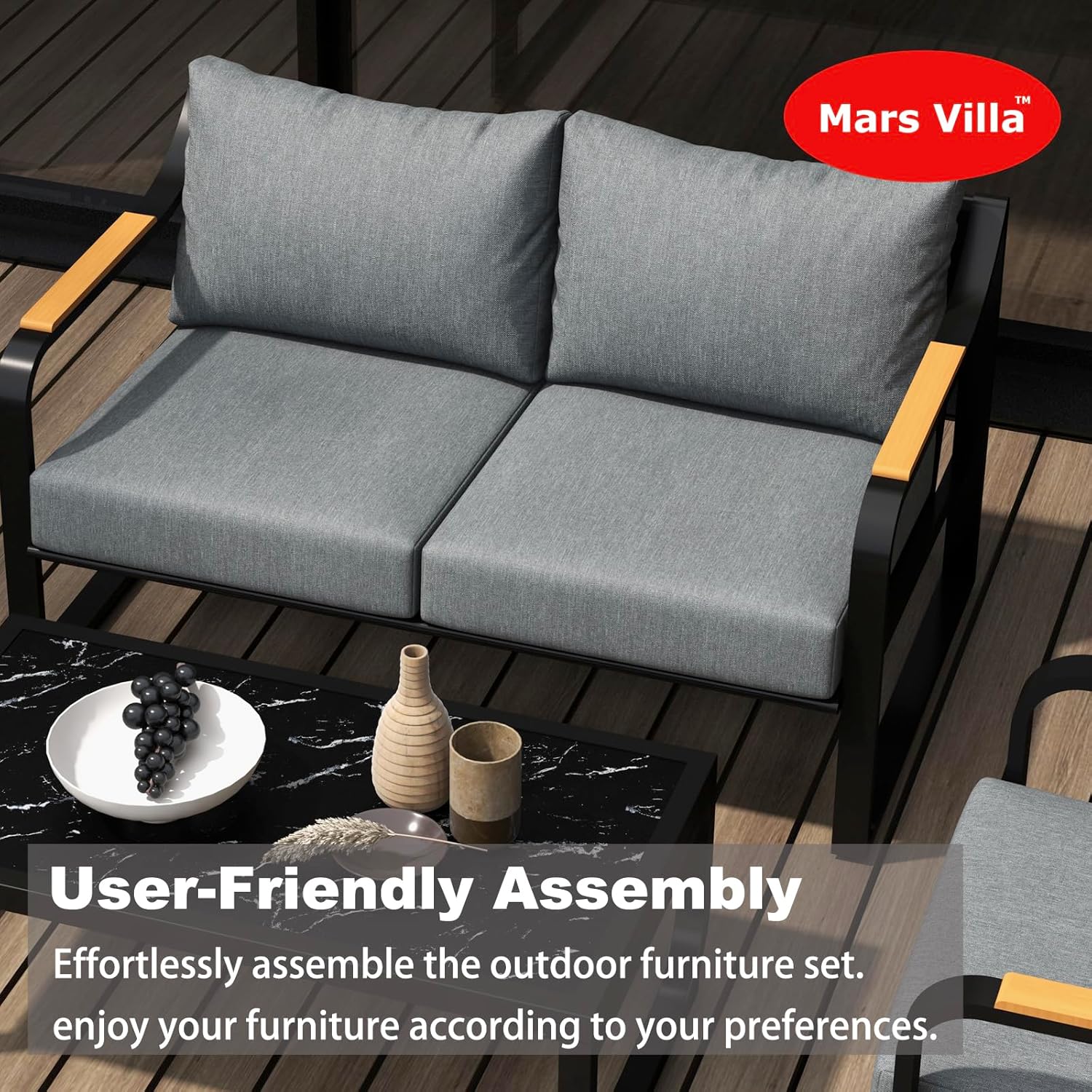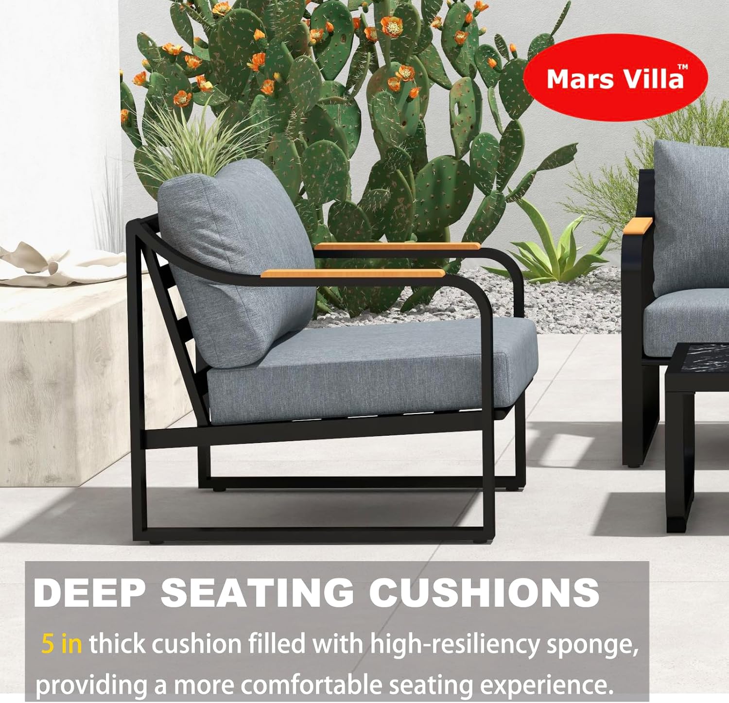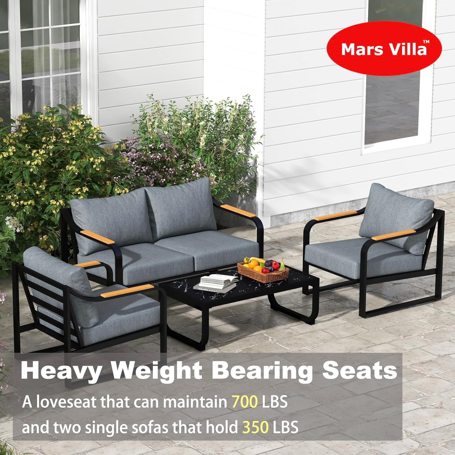 4 Pieces Outdoor Patio Furniture Set with Table, Metal Conversation Set, Modern Outside Sofa Set for Deck, Balcony, Backyard and Porch