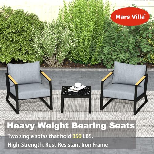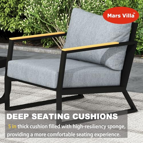 3 Pieces Patio Furniture Set, 2 Pieces Outdoor Armchairs with Removable & Washable Cushion, Modern Patio Bistro Set for for Outside, Porch and Balcony, Black and Grey
