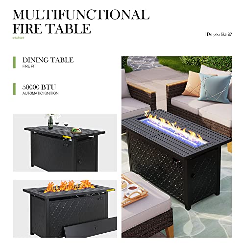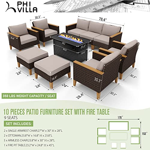 PHI VILLA 12 Seat Patio Furniture Set Outdoor Large 12 Pieces Wicker Conversation Sofa with Cushioned Ottoman for Garden Poolside, Beige