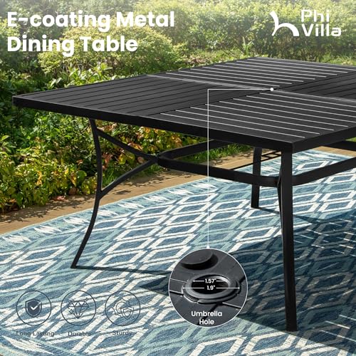 PHI VILLA 7 Piece Patio Dining Set, 6 Outdoor Swivel Dining Chairs with Blue Padded Textilene and 1 Large Metal Table(1.7''Umbrella Hole), Outdoor Dining Furniture Set for Lawn Garden Deck