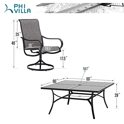 PHI VILLA 9 Piece Outdoor Patio Dining Set, Large Square Metal Dining Table and 8 Outdoor Swivel Dining Chairs, Patio Table and Gray Chair Furniture Dining Set for 8 Person