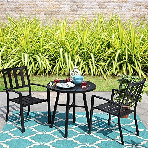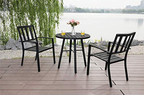 PHI VILLA Metal 3 Piece Bistro Furniture Set Outdoor Patio Set fits Garden Backyard Coffee Table 2 x Chair,1 x Table