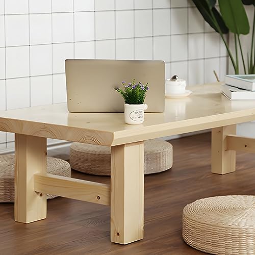 KWOKING Contemporary Solid Wood Coffee Table 4 Legs Japanese-Style Coffee Table Tatami Low Table Zen Pine Wood Tea Table Long Strip Table Balcony Small Coffee Table Coffee 31.5" L x 20" W x 15" H