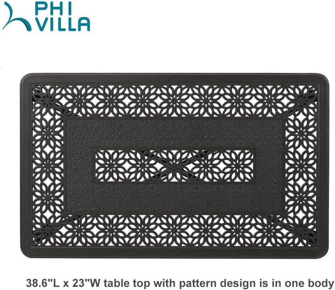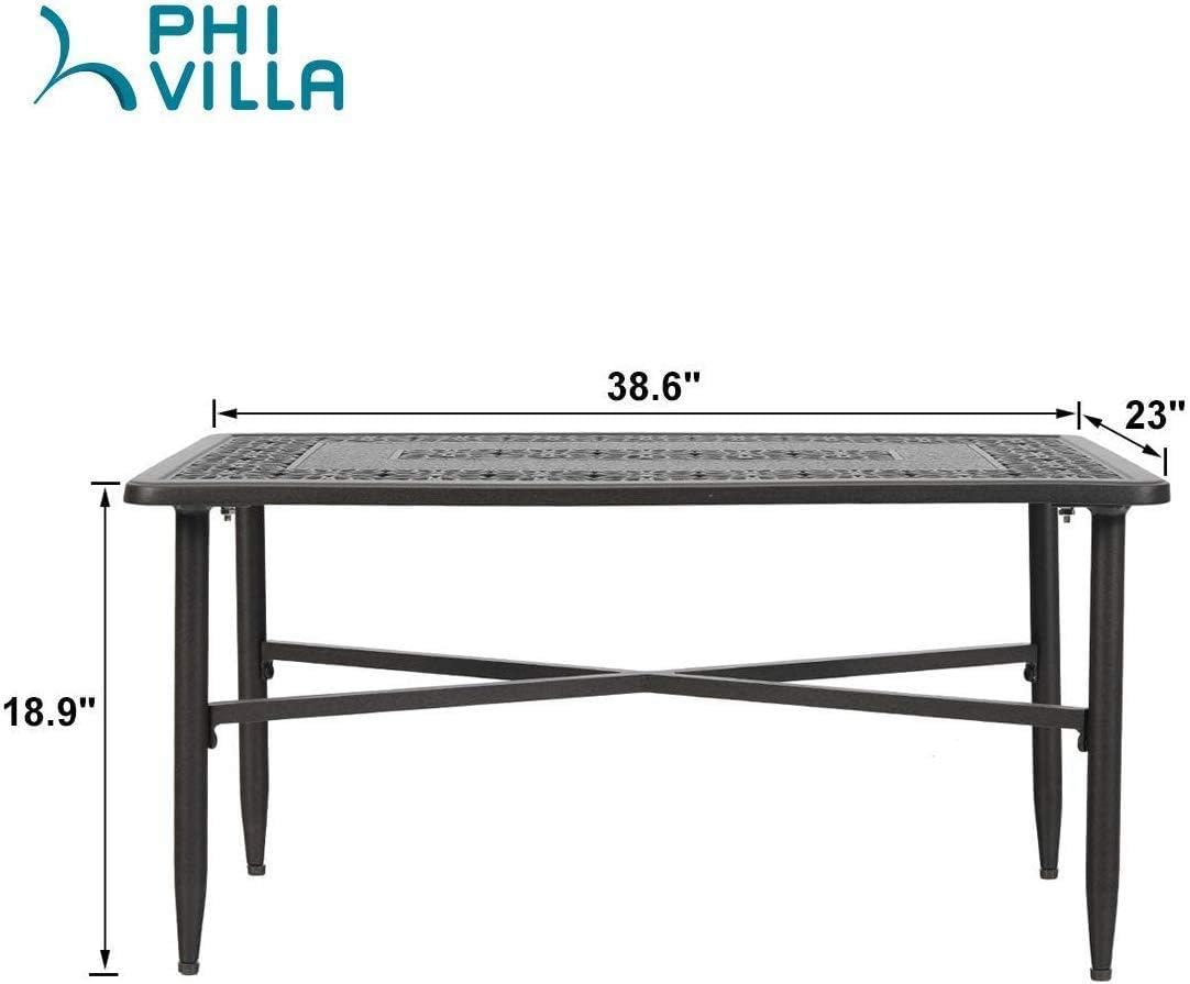 PHI VILLA 38.6" x 23" Outdoor Furniture Patio Retro Tea Dining Table Cast Aluminum Rectangular Elegant Bistro Coffee Table, Dark Brown