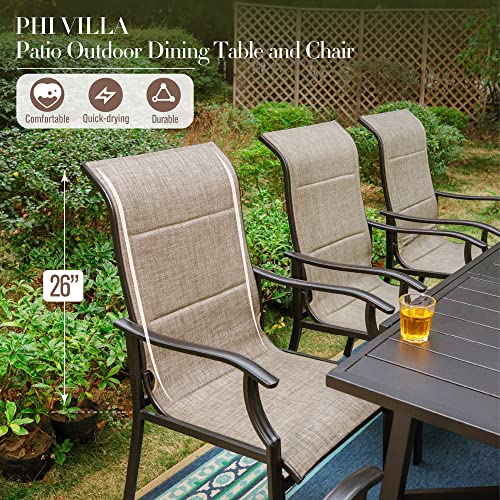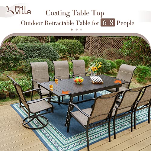PHI VILLA 9 PCS Outdoor Table and Chair Set with 8 Padded High Back 360 Degree Swivel Dining Chair, 1 Extandable Metal Table, Patio Furniture Set for Outside, Poolside