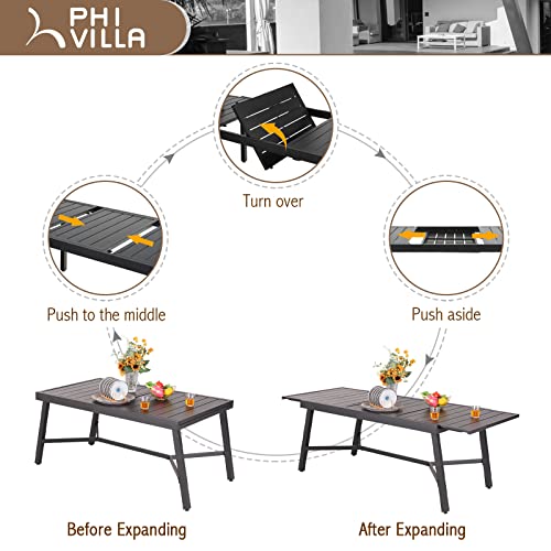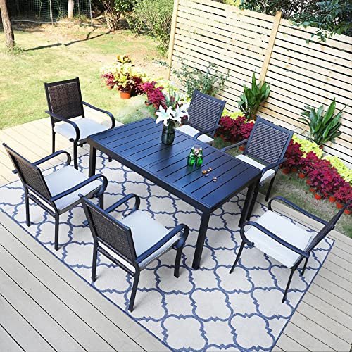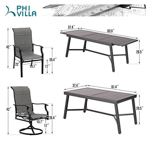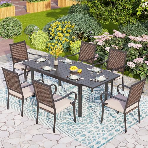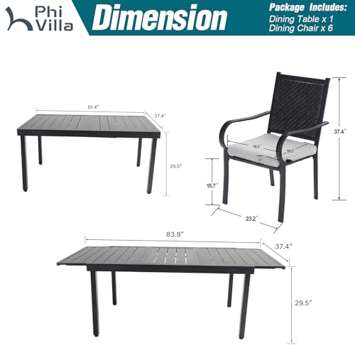 PHI VILLA 7 Piece Outdoor Dining Set for 6, Expandable Metal Dining Table, 4 Fixed and 2 Swivel Cushioned Wicker Chairs Combo for Patio, Deck, Yard