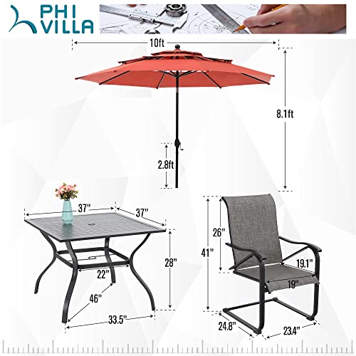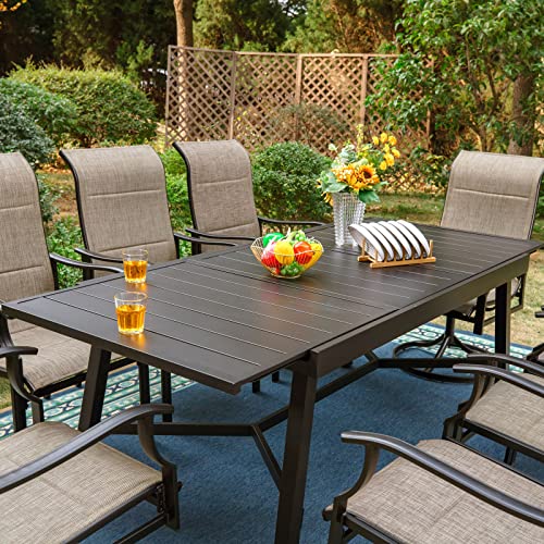 PHI VILLA 7 Piece Outdoor Dining Set with 13ft Double-Sided Large Umbrella for 6, Rectangle Metal Steel Dining Table & Textilene C-Spring Chairs Furniture Set for Patio (Beige)