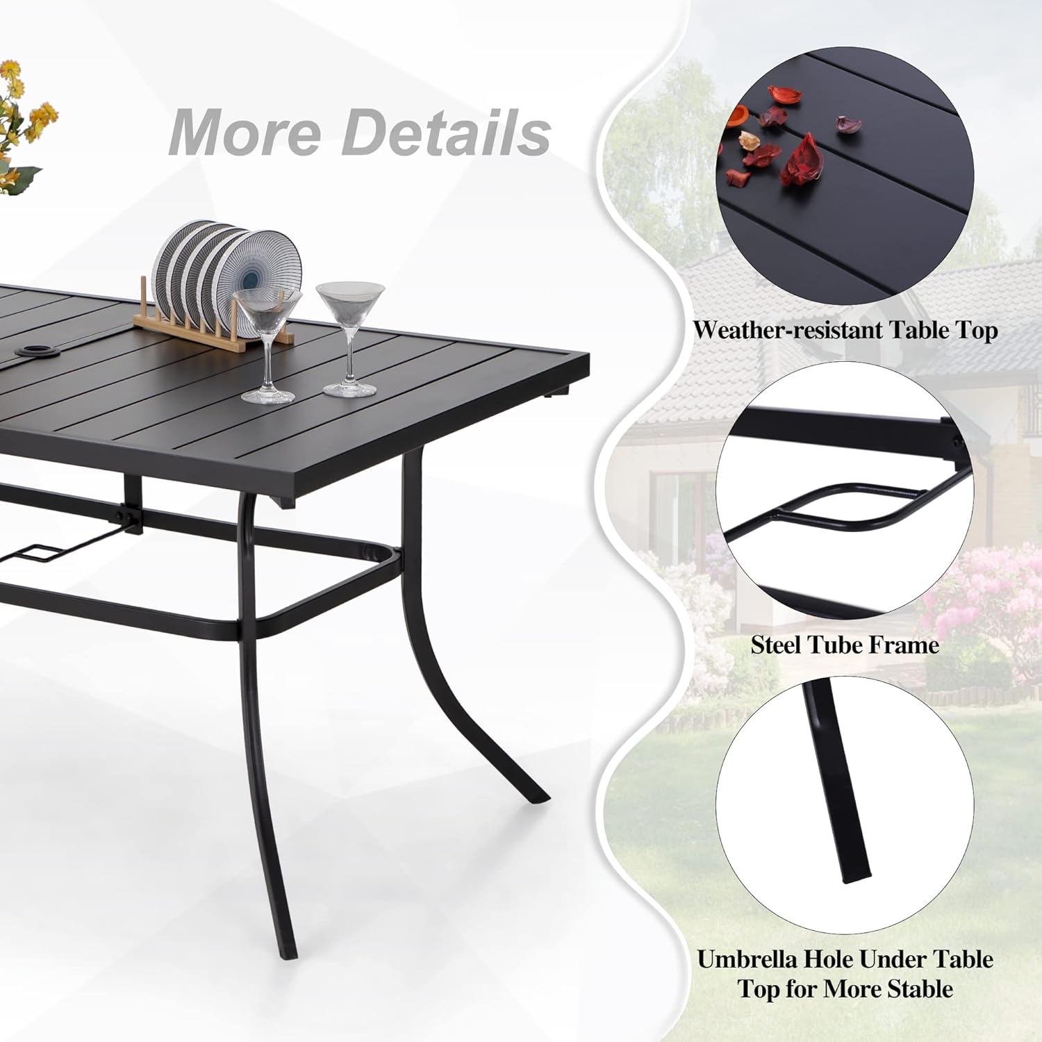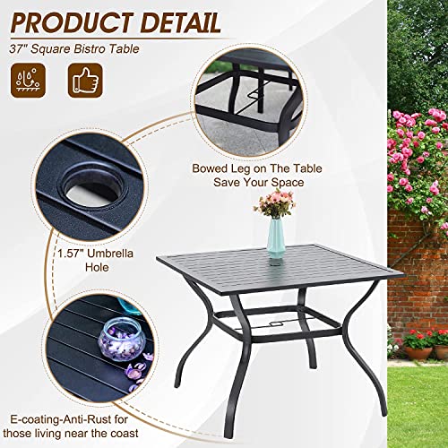 PHI VILLA Outdoor Patio Dining Set 7 Pieces Metal Furniture Set, 6 x Swivel Chairs with 1 Rectangular Umbrella Hole Table for Ourdoor Backyard Bistro with Cushion