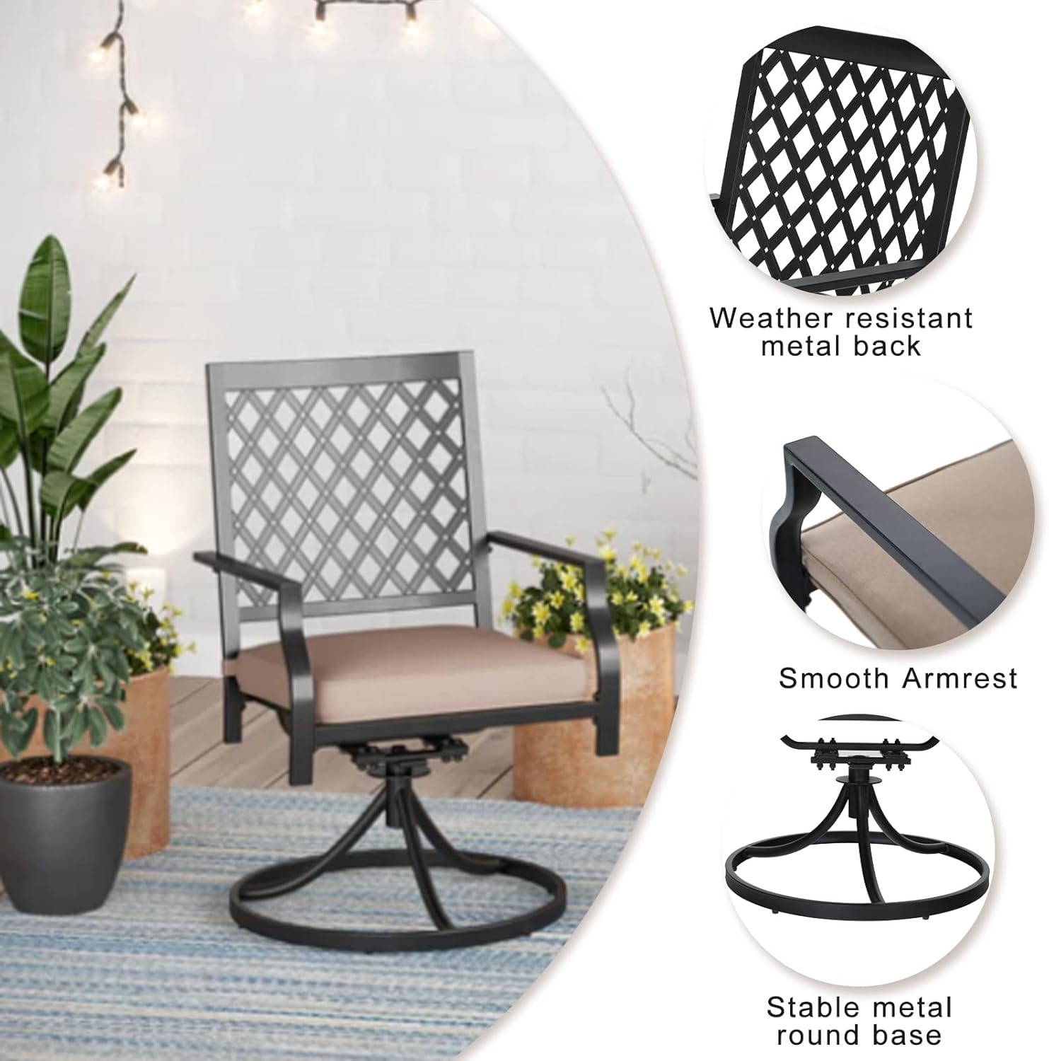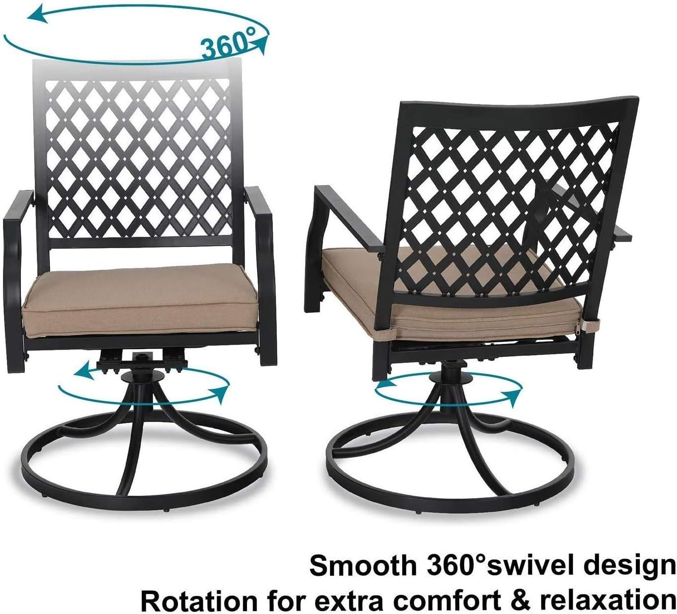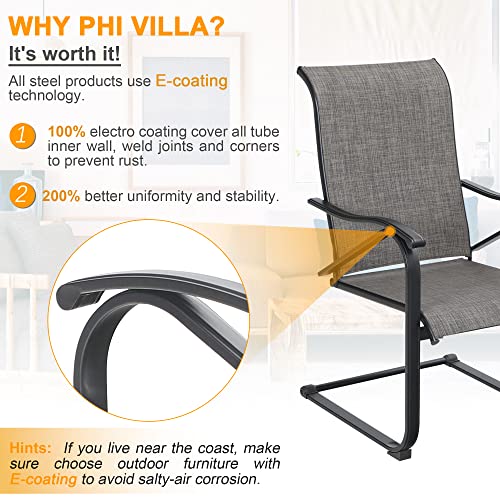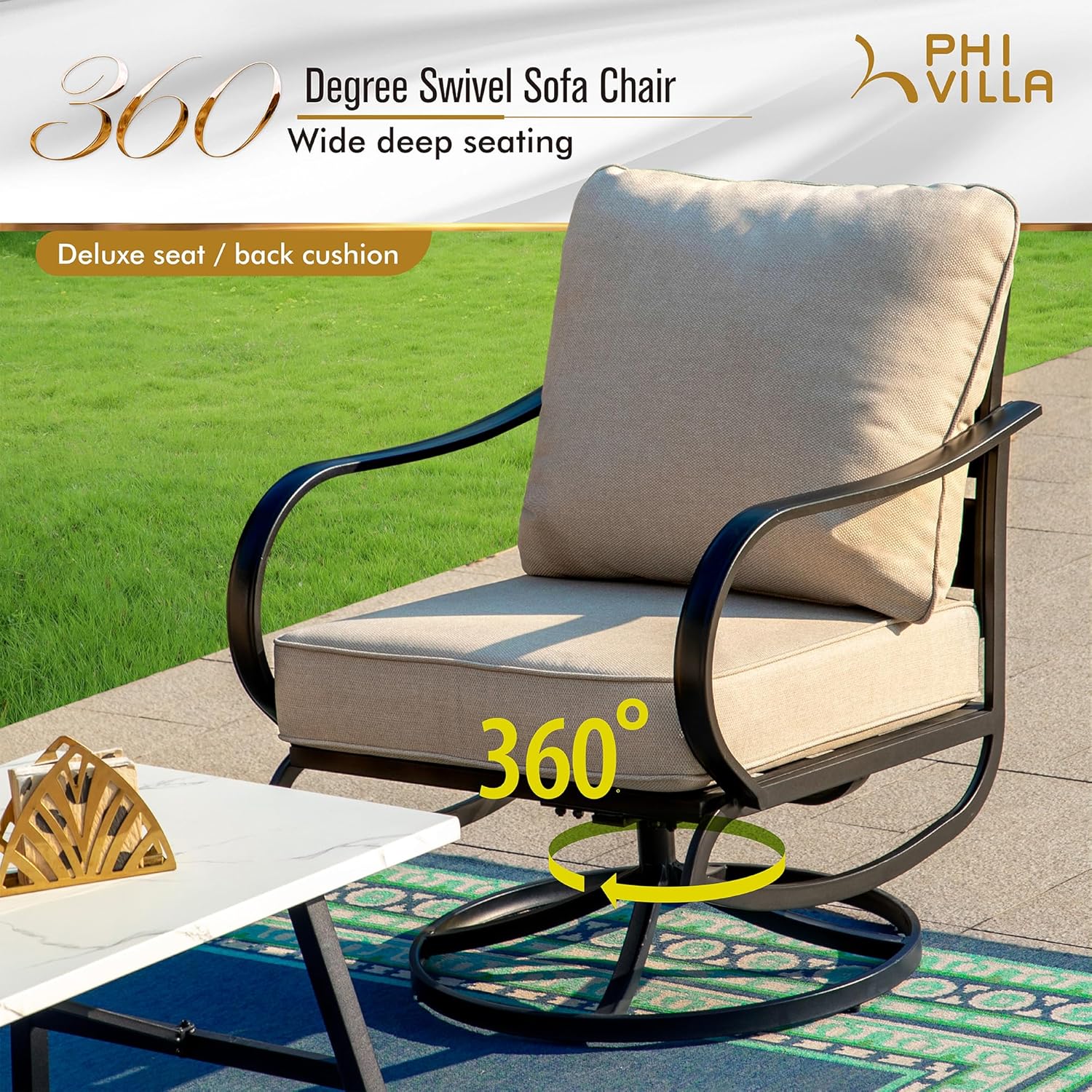 PHI VILLA Patio Furniture Chair Set for 2, Deluxe Outdoor Conversation Set with 2 Swivel Padded Sofa Chair, Full Metal with 5.8" Cushion for Deck, Lawn, Garden