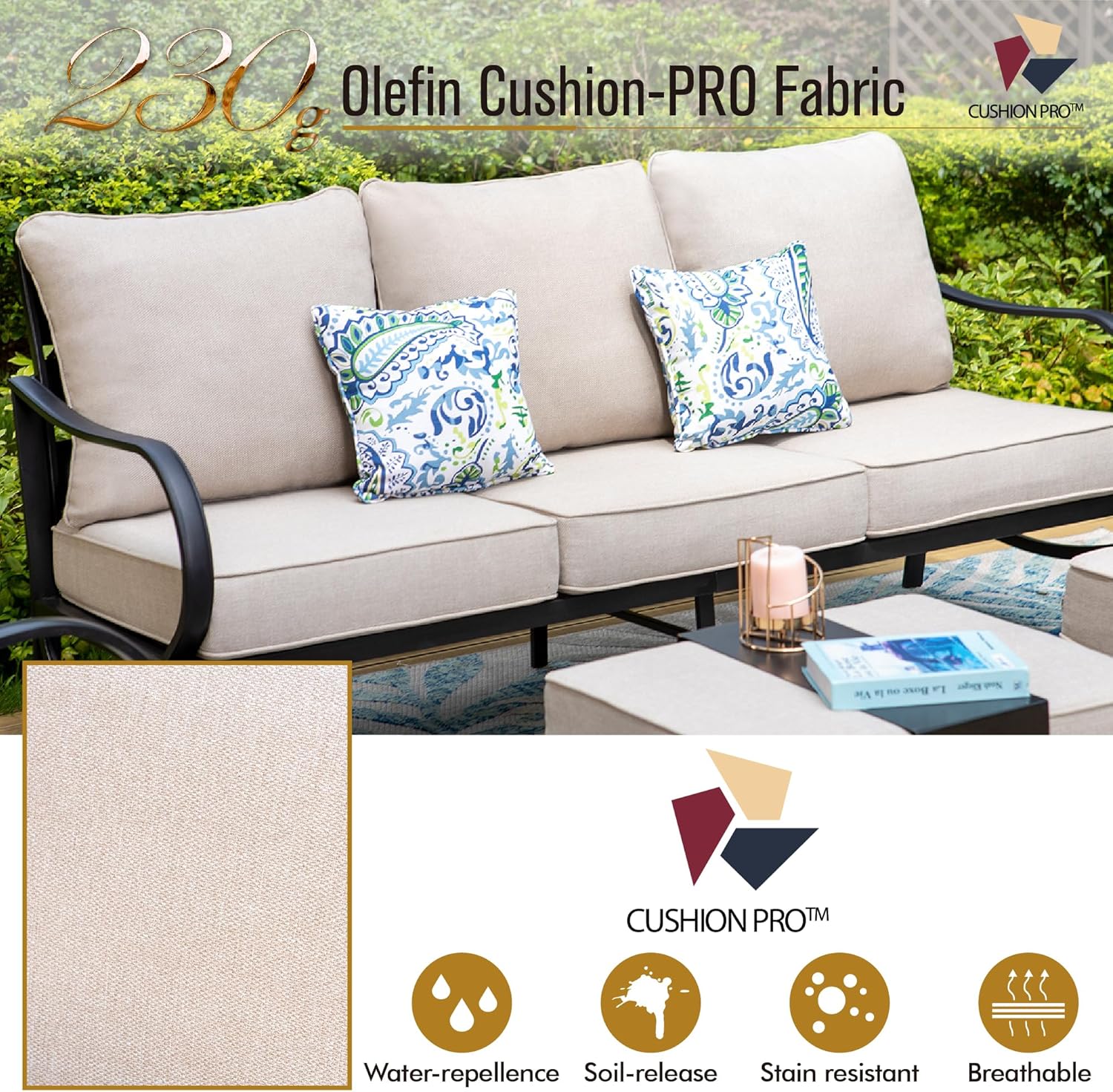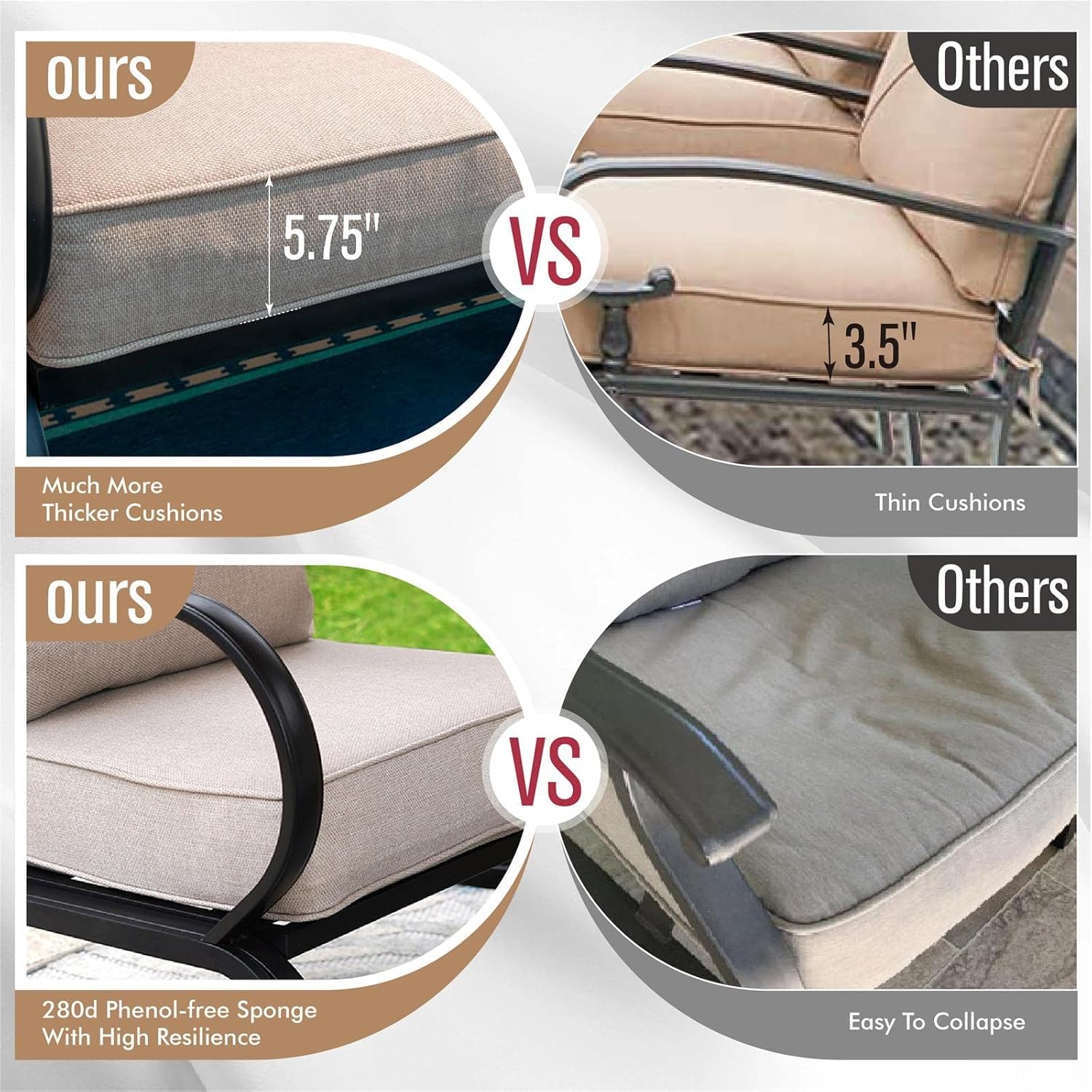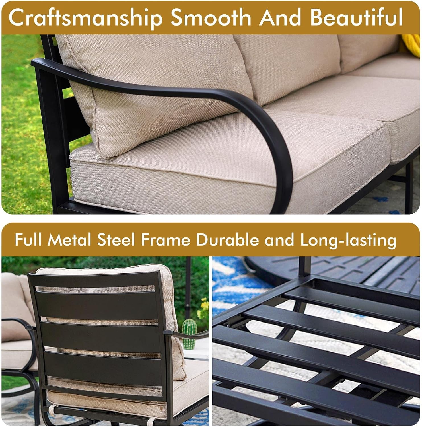 PHI VILLA Patio Furniture Chair Set for 2, Deluxe Outdoor Conversation Set with 2 Swivel Padded Sofa Chair, Full Metal with 5.8" Cushion for Deck, Lawn, Garden