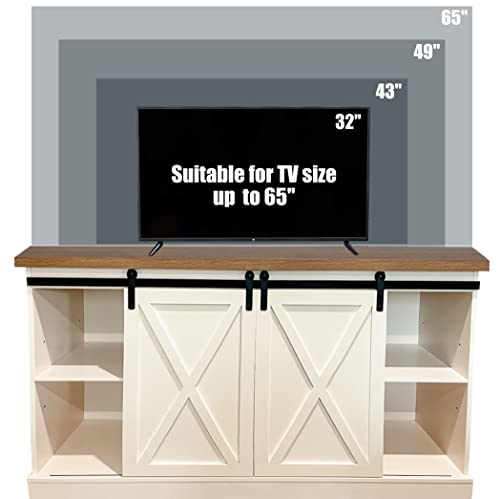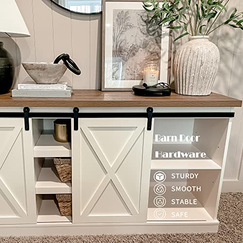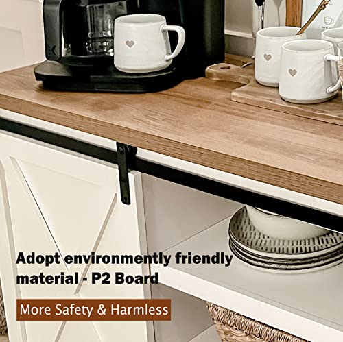 PHI VILLA Farmhouse Coffee Bar Cabinet - Sliding Barn Door Kitchen Sideboard Buffet Storage Cabinet