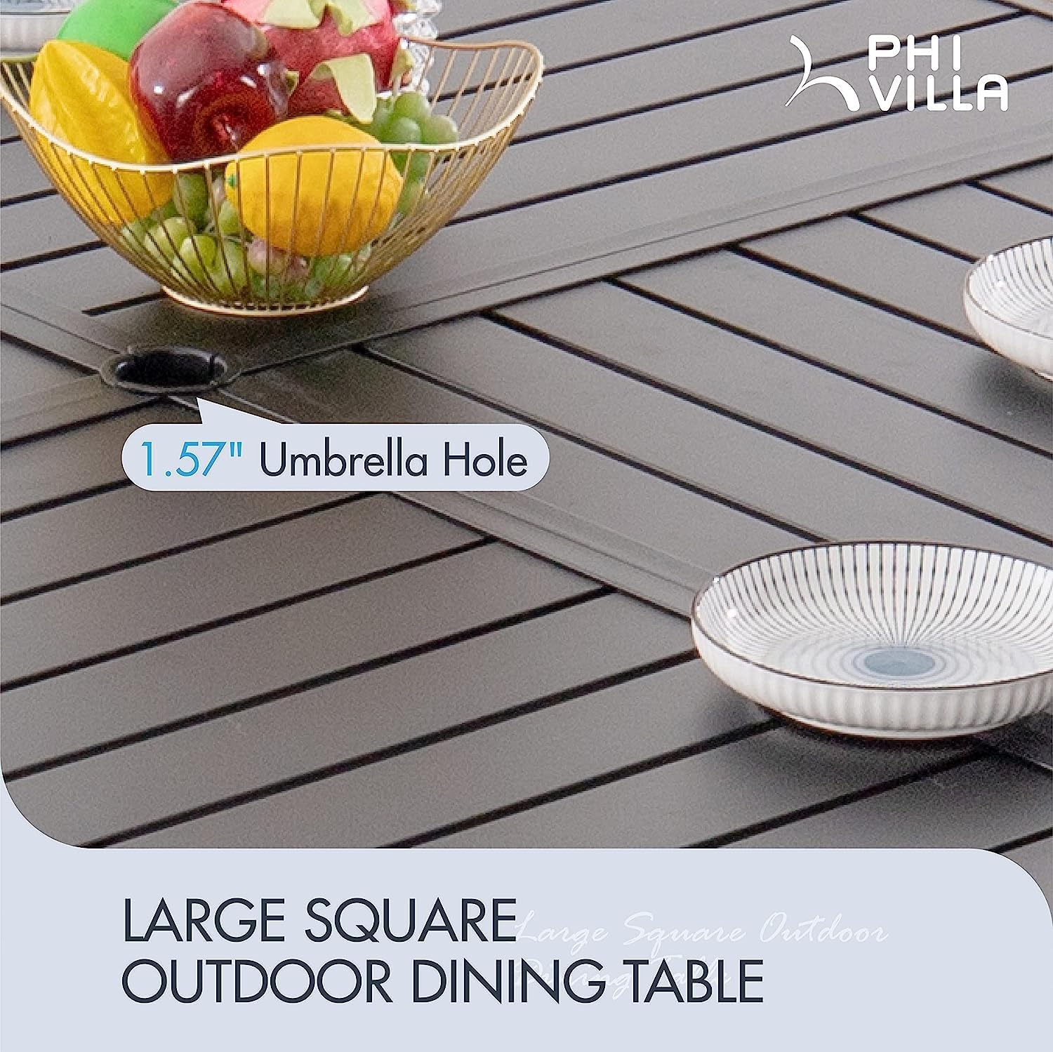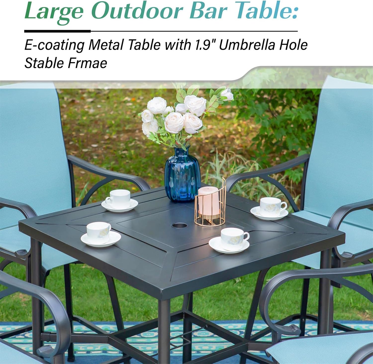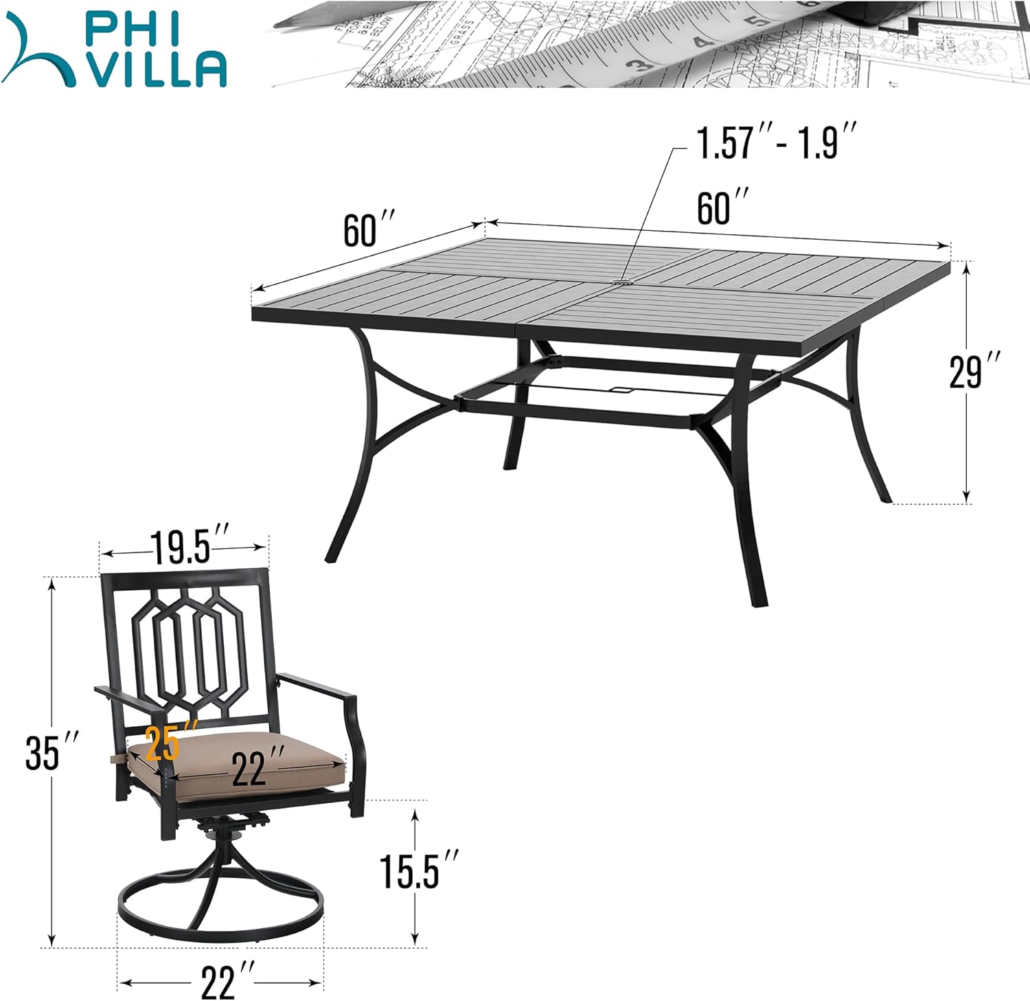 PHI VILLA 9-Piece Outdoor Dining Set, Square Metal Table (60") with Umbrella Hole and 8 Swivel Dining Chairs – Perfect for Patio, Garden, Deck, Porch, and Yard, 9PCS Outdoor Dining Set Style 4