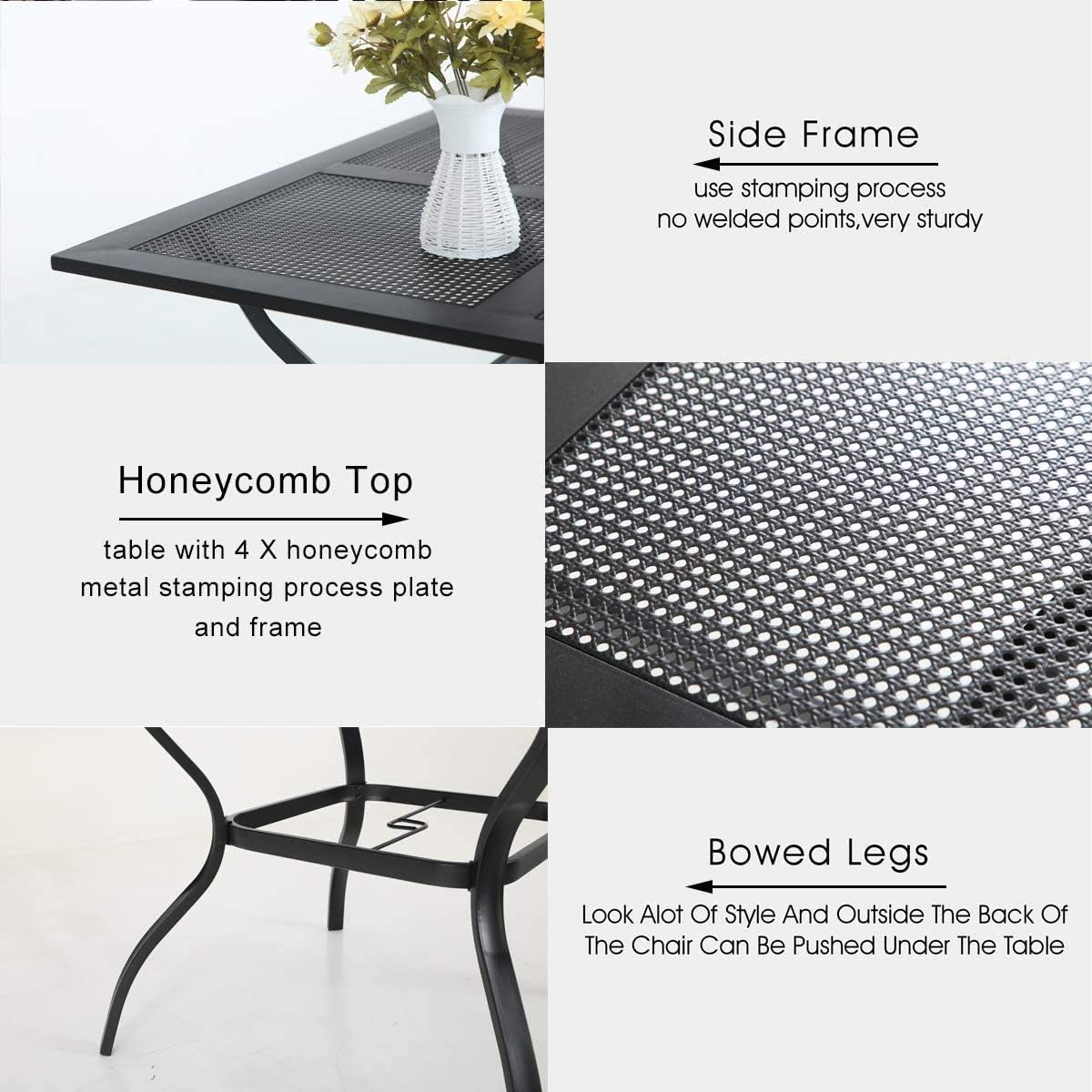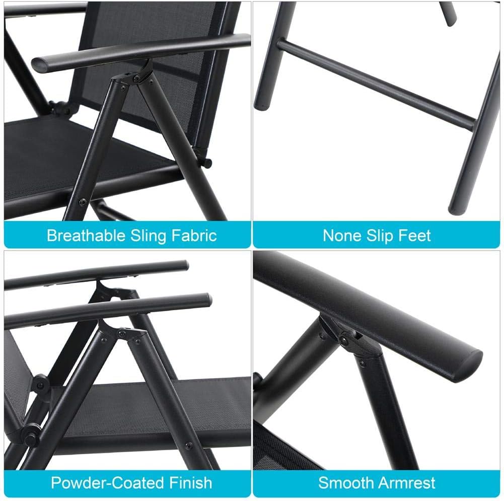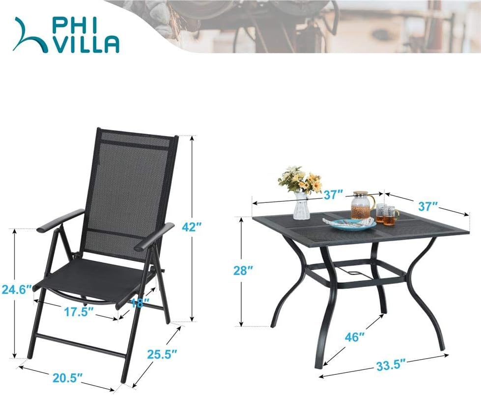 PHI VILLA 5 pcs Patio Dining Sets with 1.57" Umbrella Hole, Outdoor Dining Furniture Set with 4 Reclining Folding Sling Chair & 1 Square Metal Table