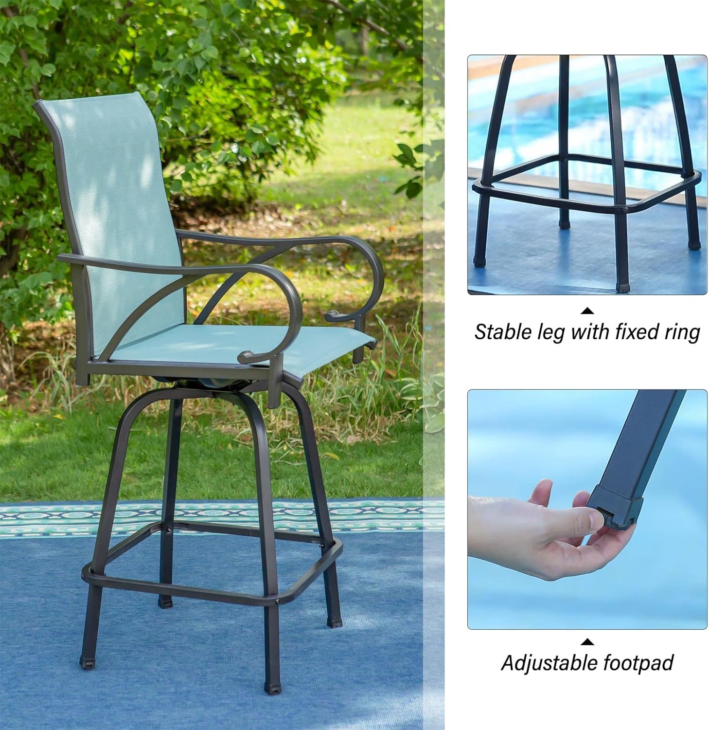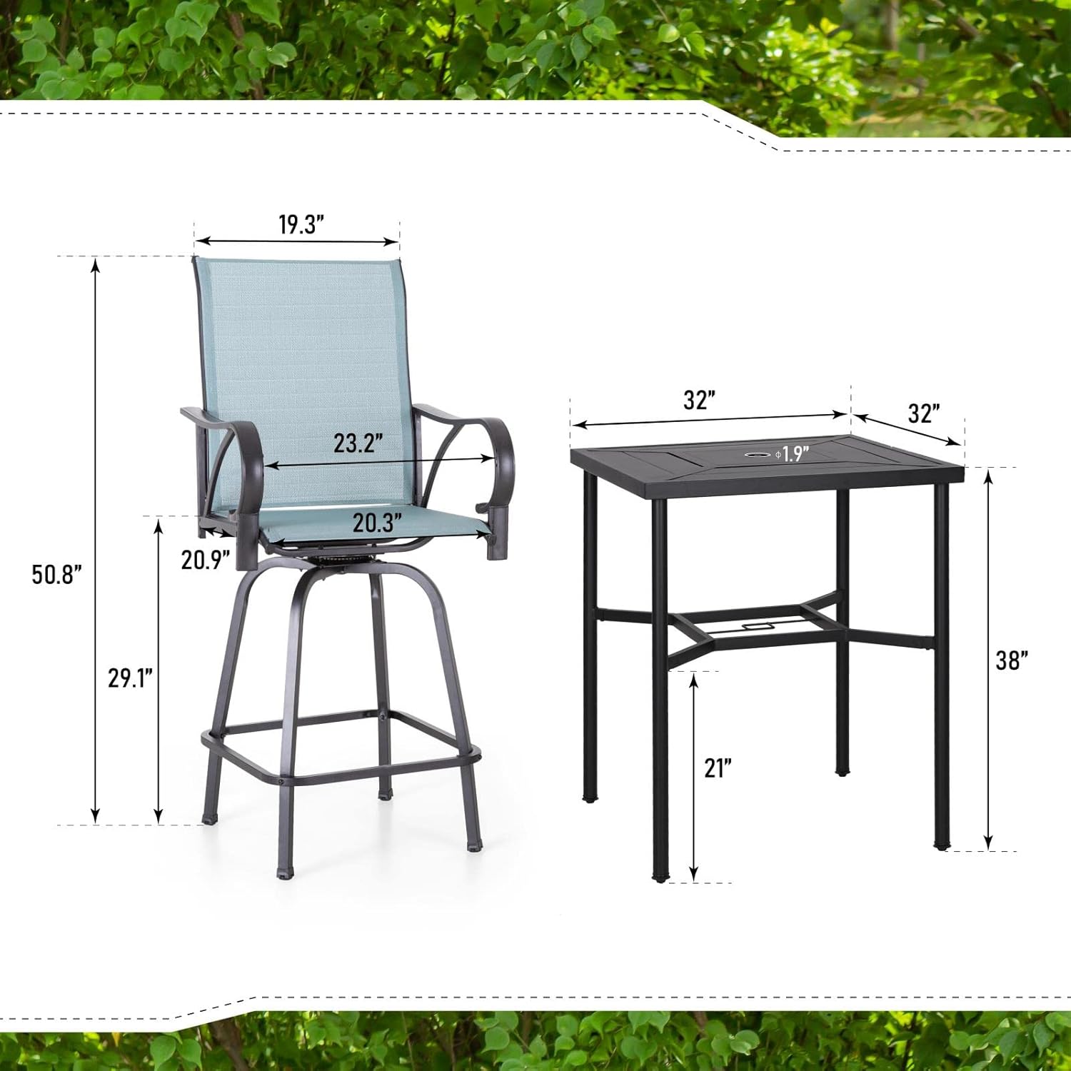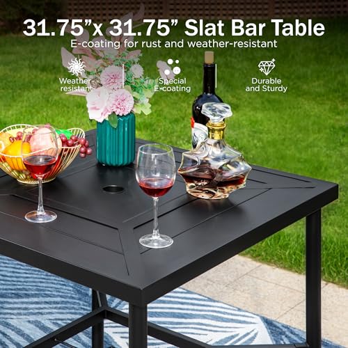 PHI VILLA 3 Pcs Patio Swivel Bar Set, Outdoor Bar Height Table and Chairs Set with Outdoor Swivel Bar Stool Chairs and Square Metal Bar Table