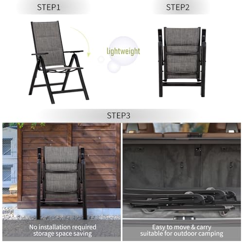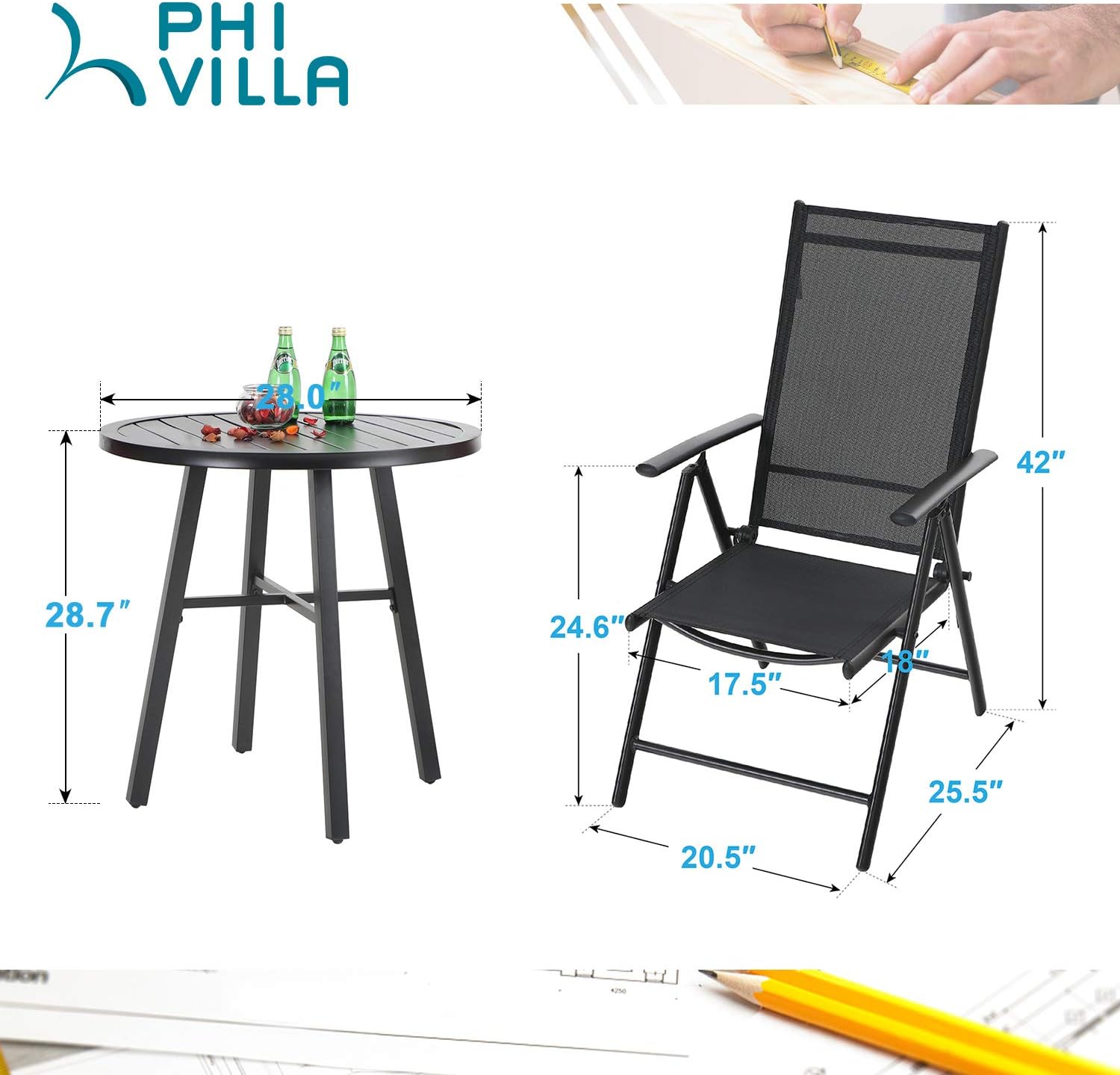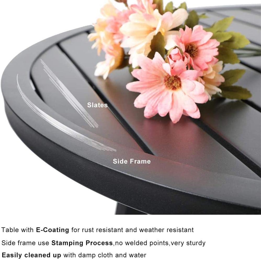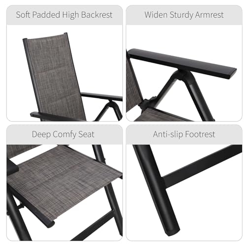 PHI VILLA 3 pcs Patio Bistro Set, Outdoor Bistro Furniture Set with 2 Reclining Folding Sling Chair & 1 Round Metal Side Table