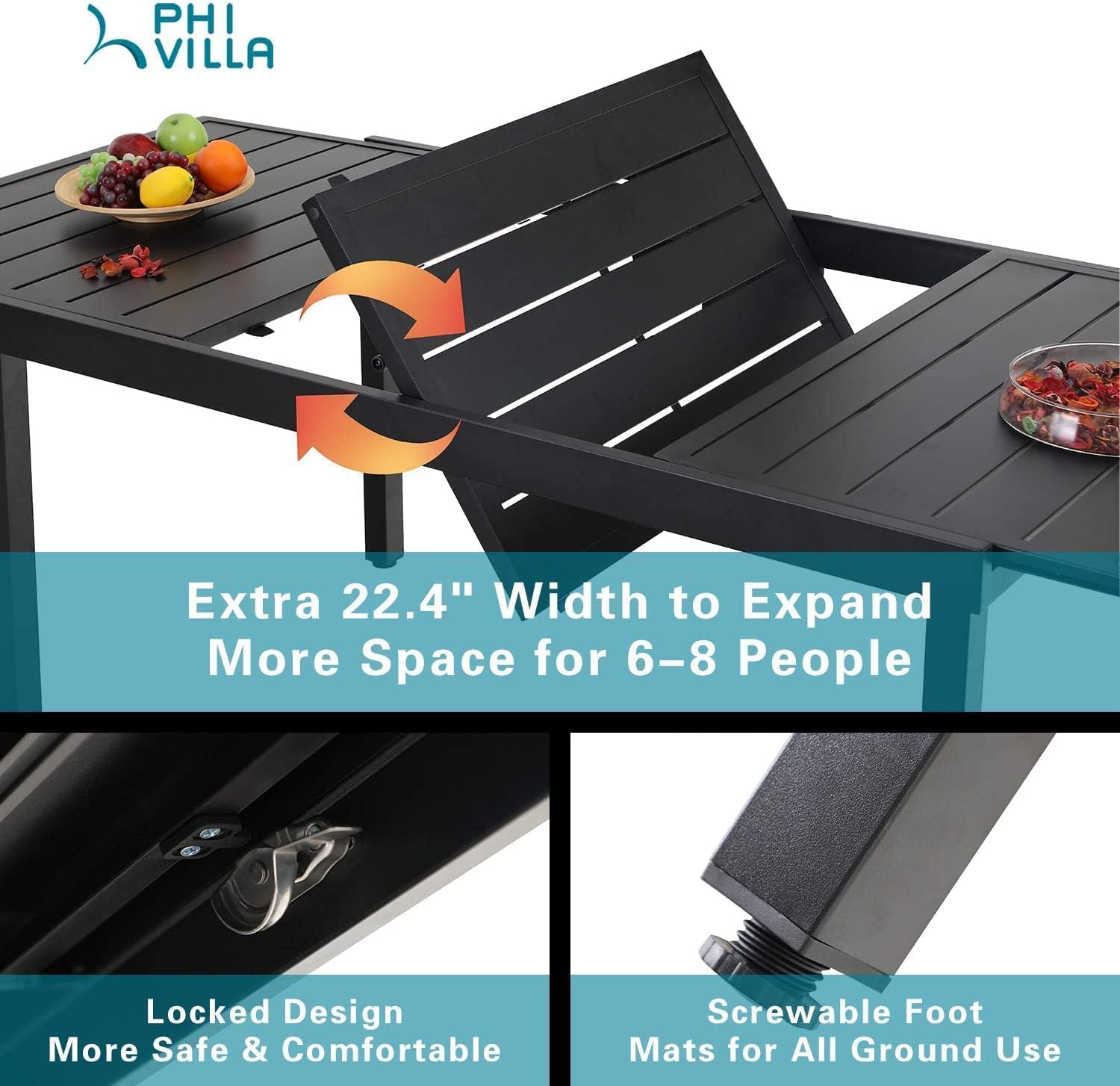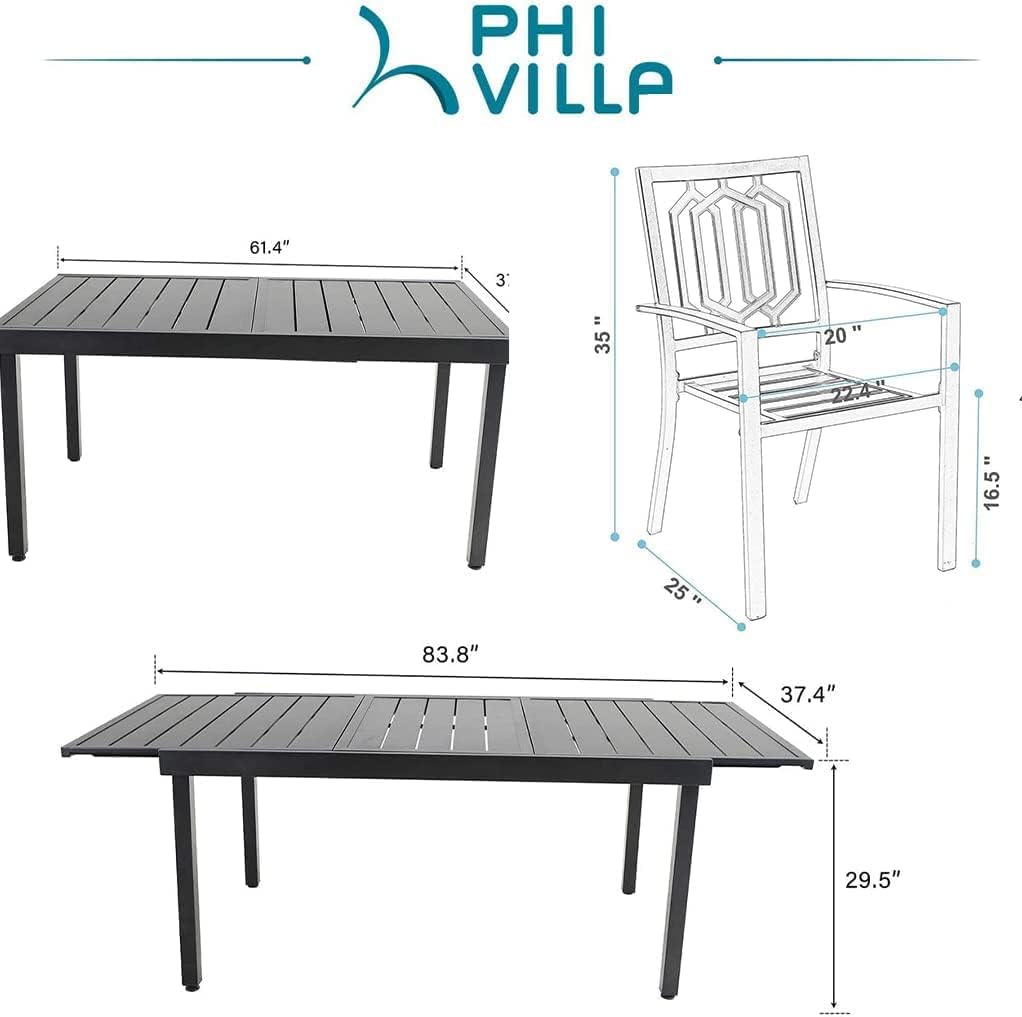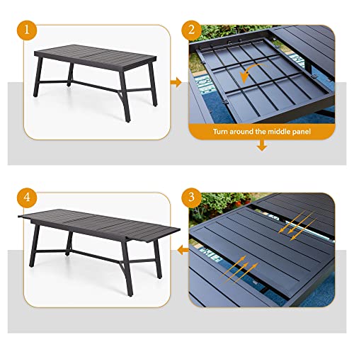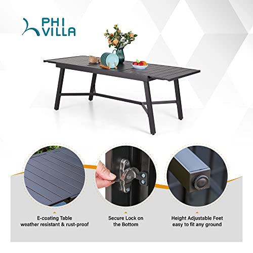 PHI VILLA 9 Pcs Outdoor Patio Dining Set, Outdoor Patio Furniture Set for 6-8 People, Patio Conversation Set with Expandable Rectangular Table and Cushioned Metal Chairs for Yard, Deck, Garden