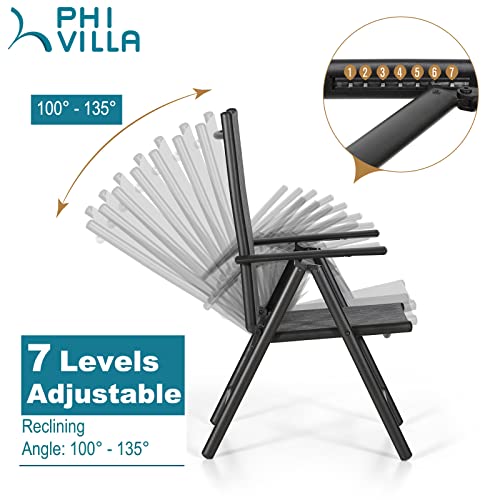 PHI VILLA 7 Piece Patio Furniture Outdoor Dining Set, Patio Dining Table and Chairs Set with Adjustable Folding Portable Padded Patio Chairs Aluminum & Rectangle Metal Dining Table for Garden