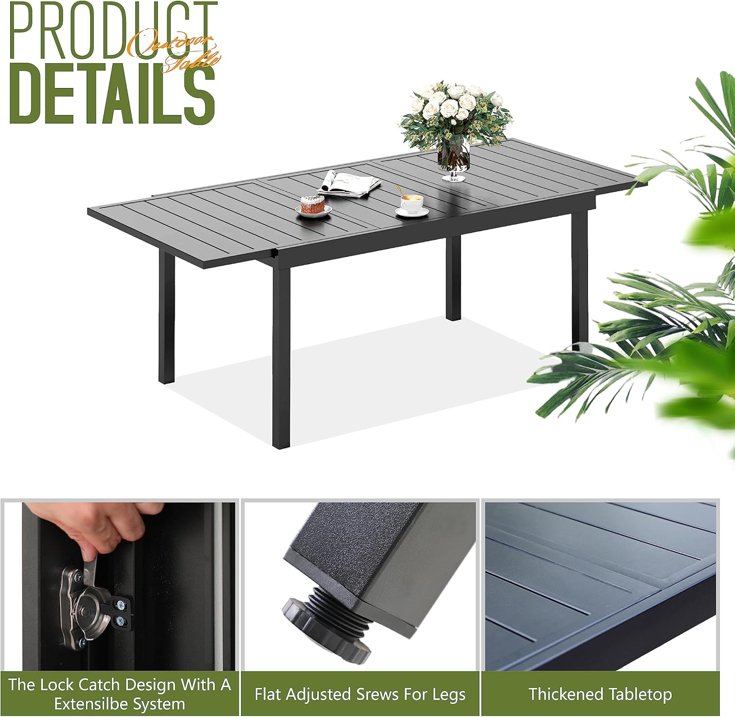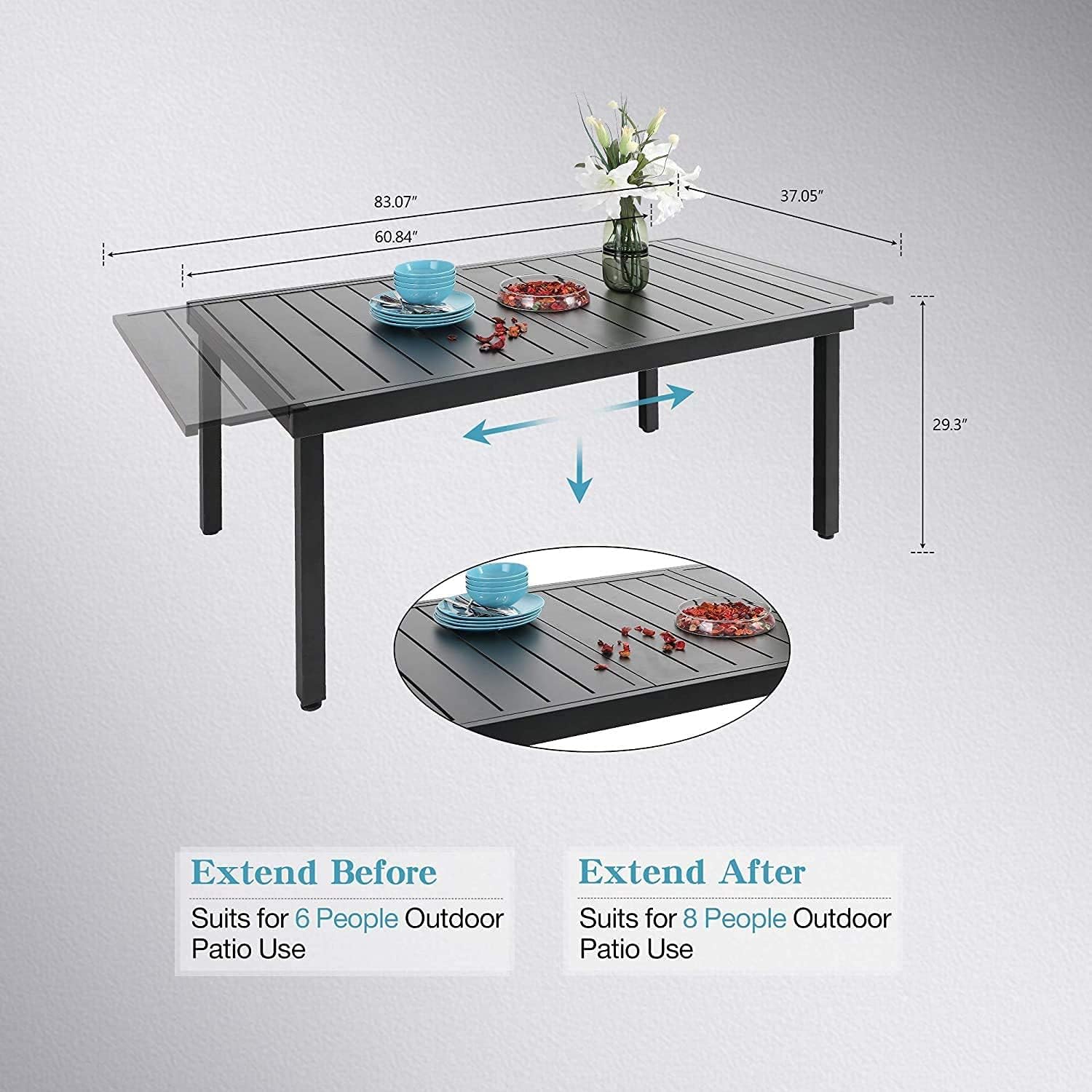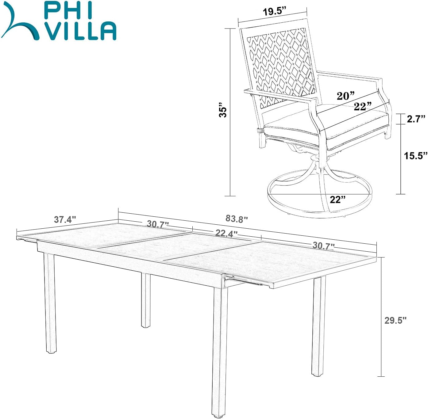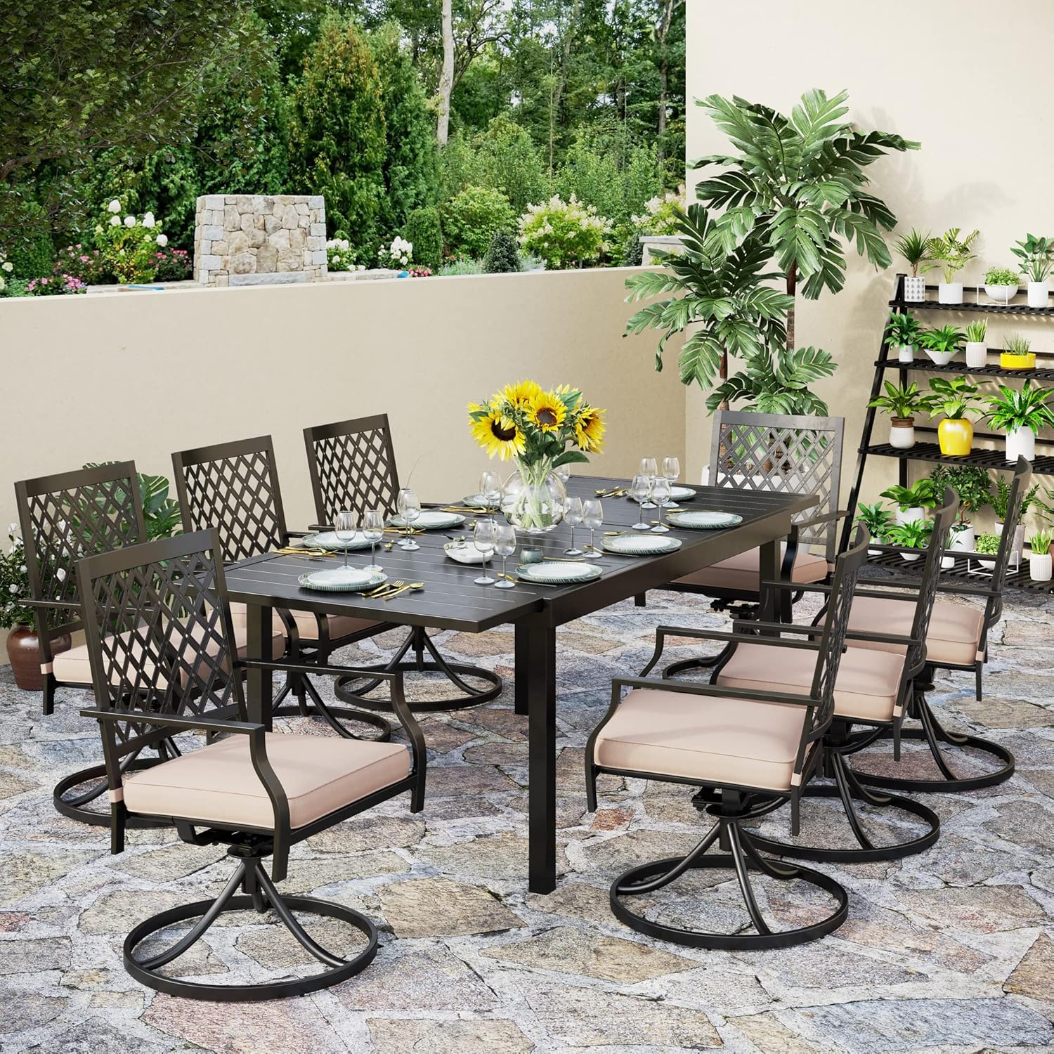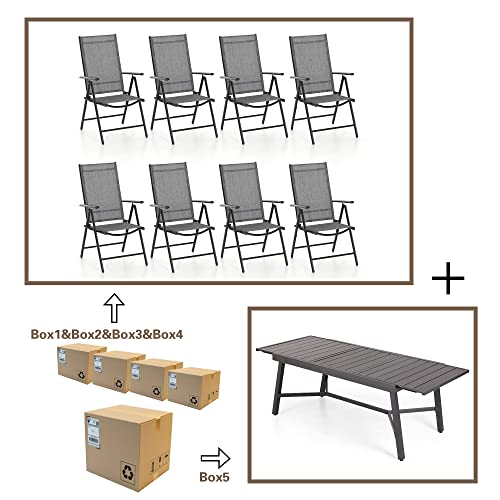 PHI VILLA 9 Pieces Outdoor Dining Set, Expandable Metal Table (64"-82") and 8 Swivel Dining Chairs – Perfect for Patio, Garden, Deck, Porch, and Yard, 9PCS Outdoor Dining Set Style 2