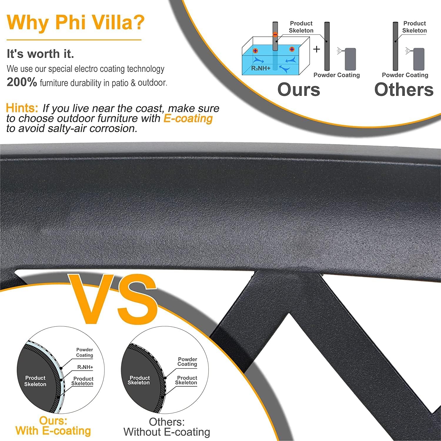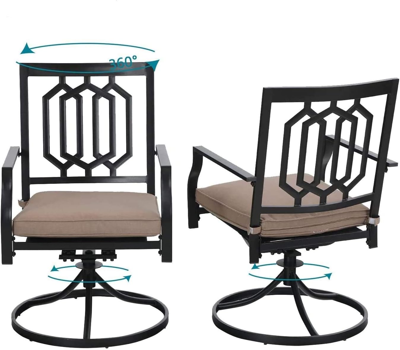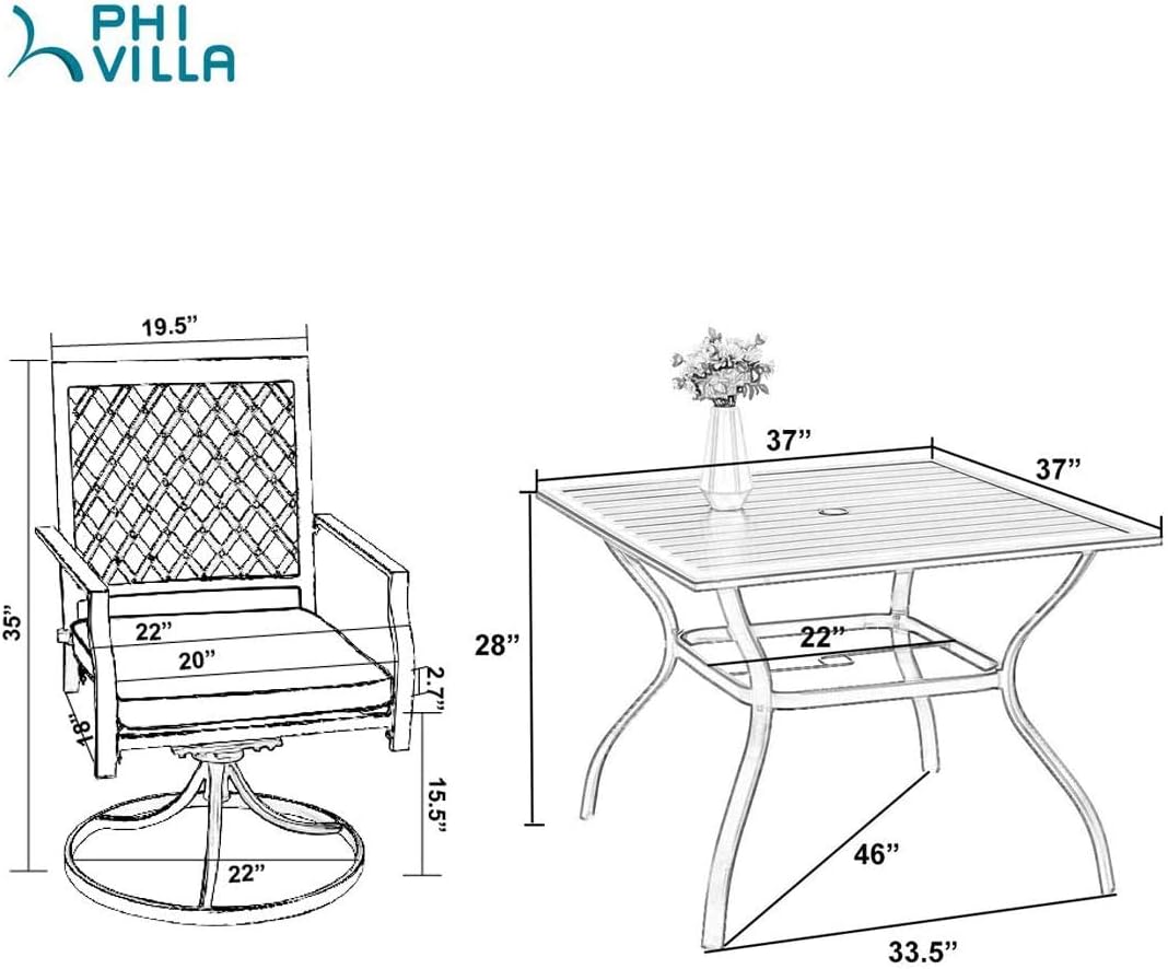 PHI VILLA 5-Piece Outdoor Dining Set, 4 Steel Metal Swivel Patio Chairs & 1 Square Dining Table, Black