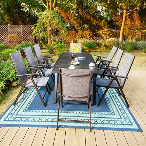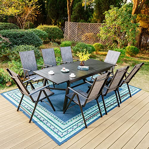 PHI VILLA 9 Pieces Patio Dining Set for 8, High Back Folding Sling Chairs Navy and E-coating Expandable Rectangular Metal Table, Outdoor Dining Table and Chairs Furniture for Porch Backyard