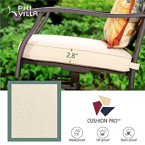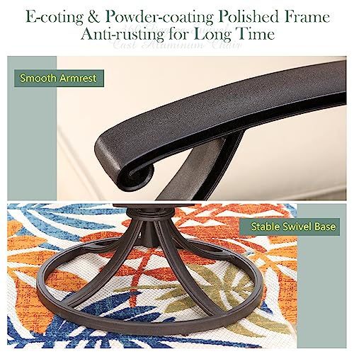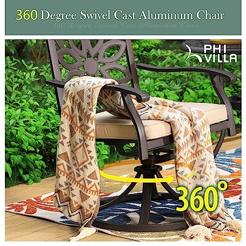 PHI VILLA Cast Aluminum Outdoor Patio Swivel Dining Chairs, Extra Wide Armrest Chairs with Seat Cushion, Casting Aluminum Back for All Weather, Set of 4