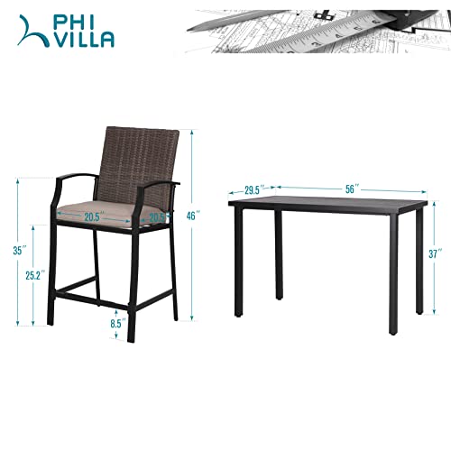 PHI VILLA 5 PCS Outdoor Bar Set,4 Patio Swivel Barstool with Thickened Frame and Breathable Fabric,Large Square Table with Coating,Solid and Durable for All-weather