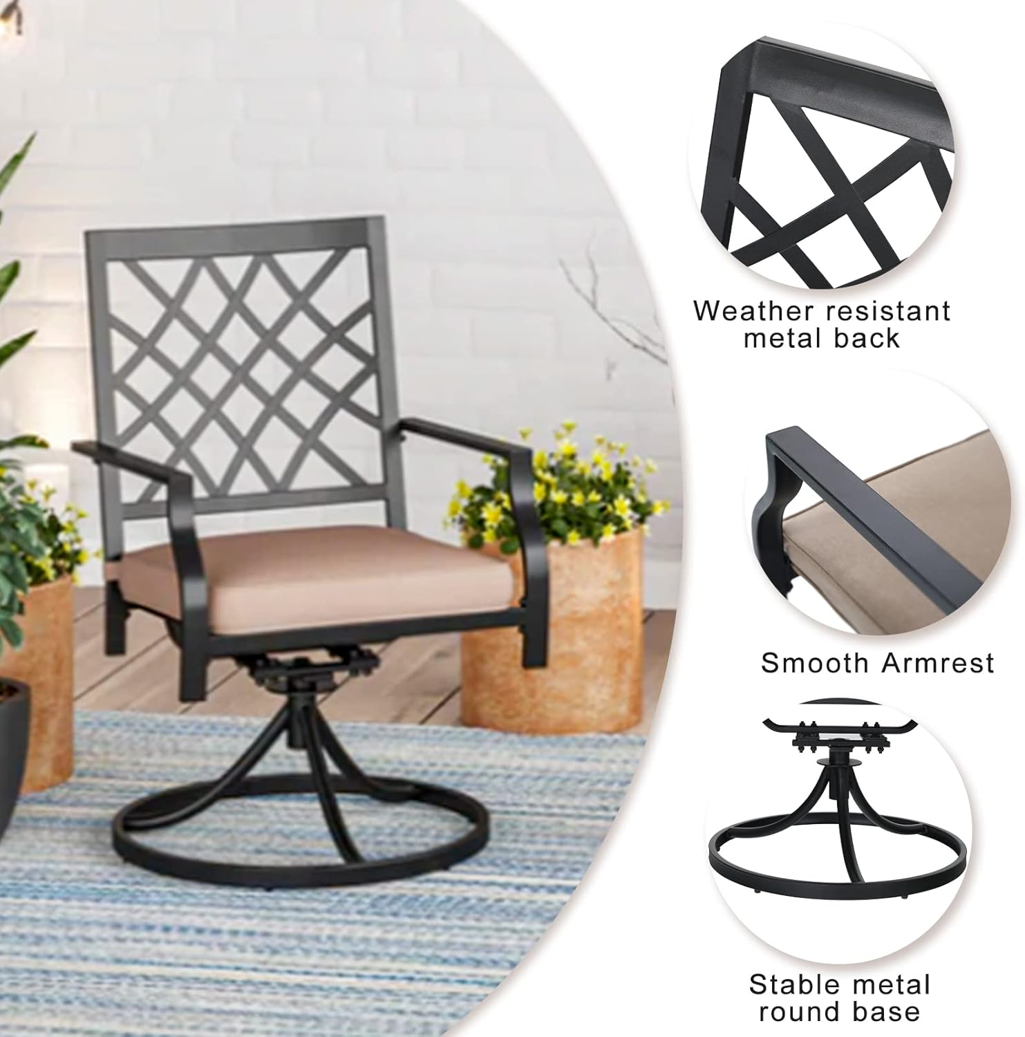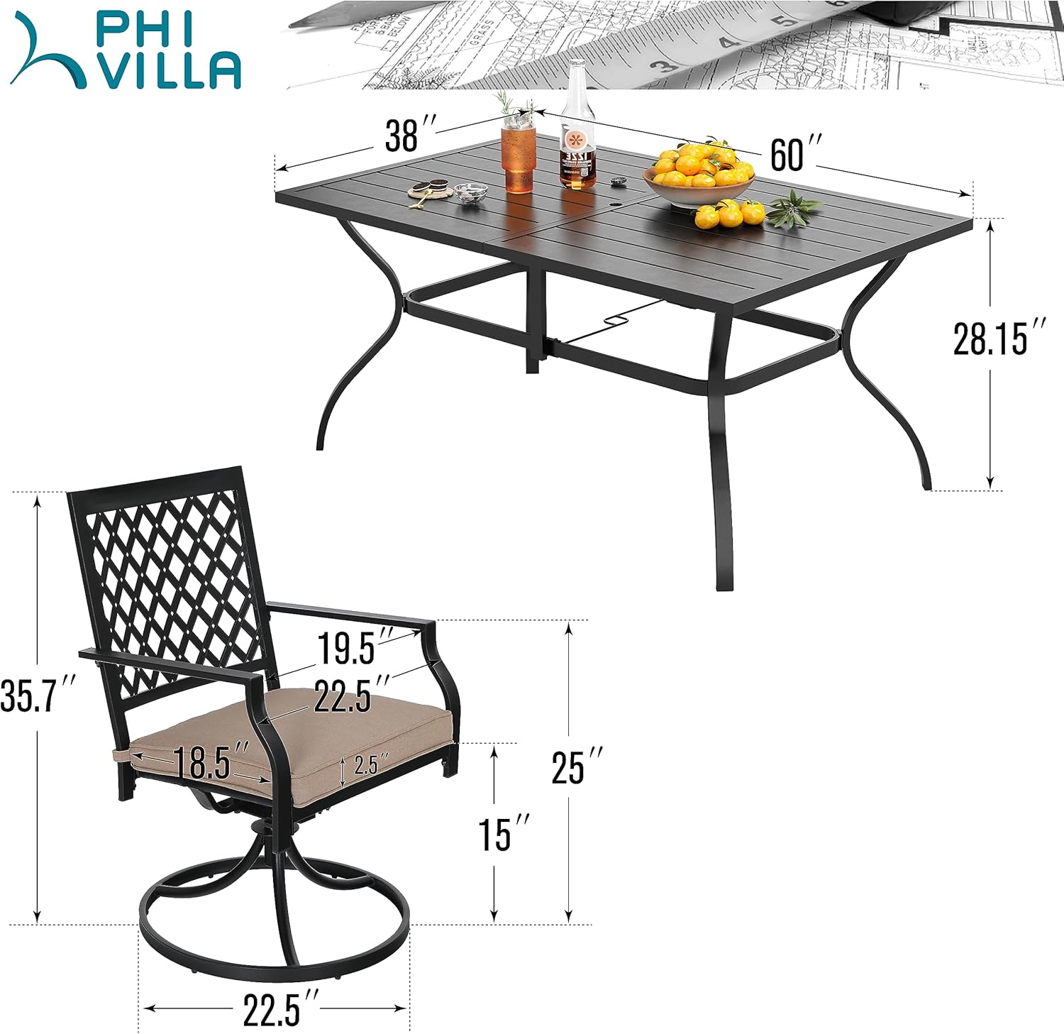 PHI VILLA 7-Piece Outdoor Dining Set, 6 Steel Metal Swivel Patio Chairs & 1 Rectangular Dining Table, Black