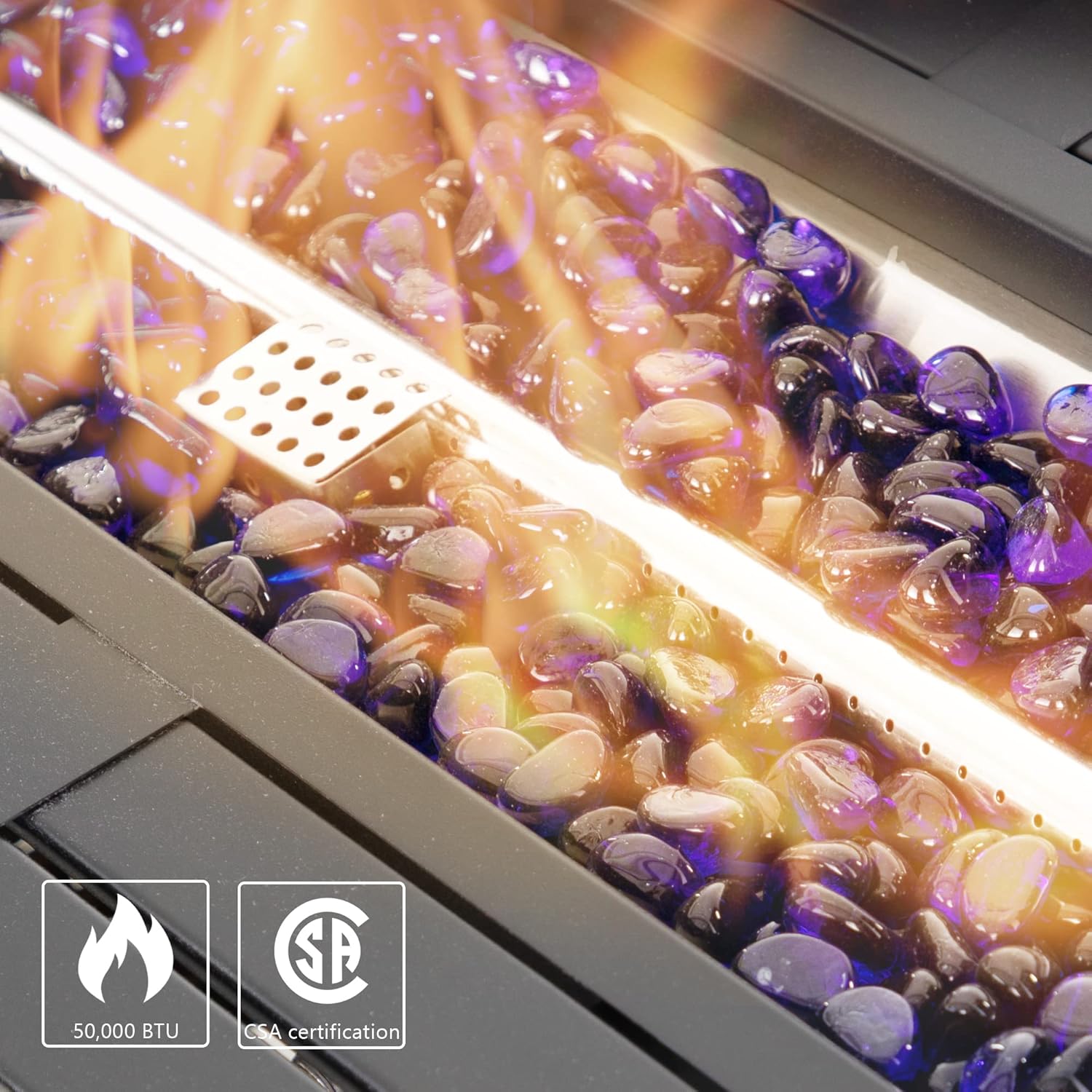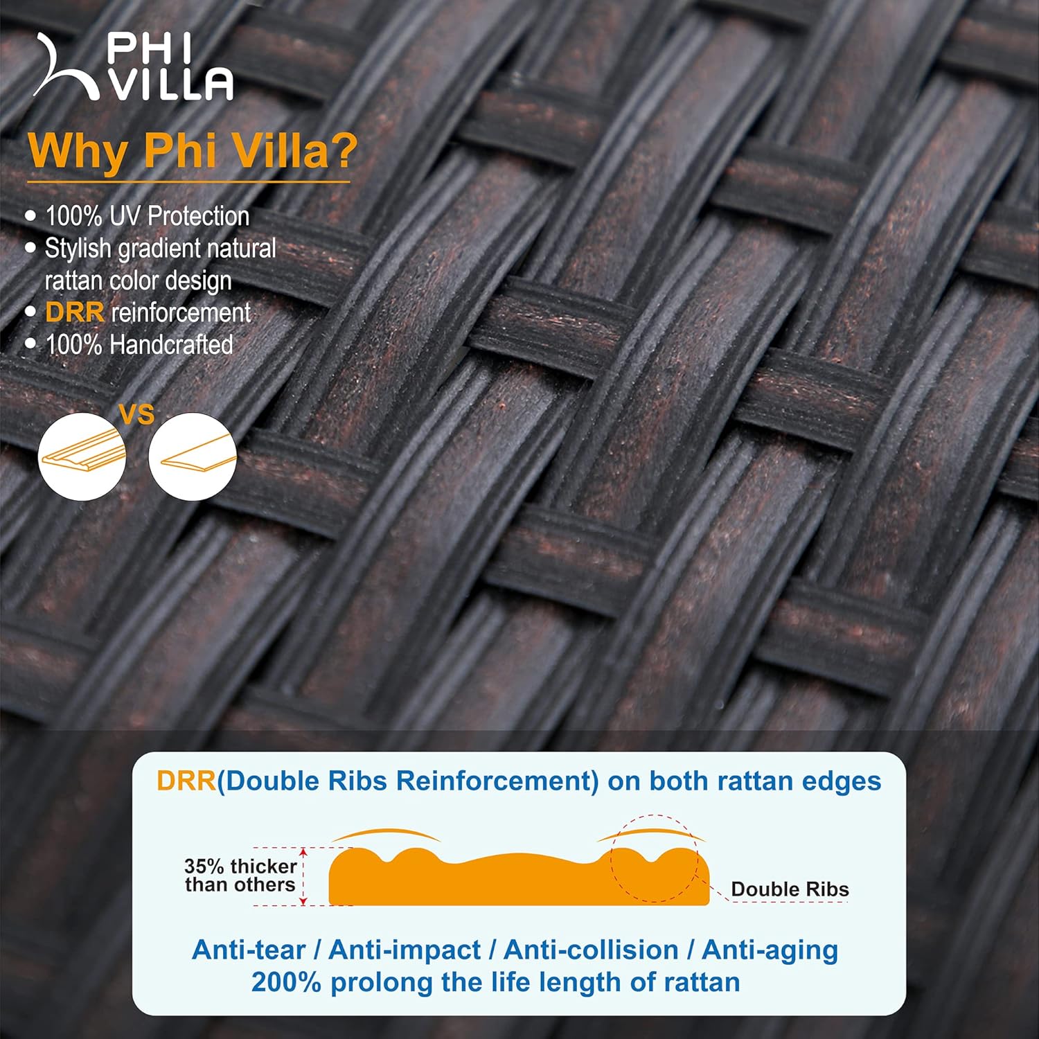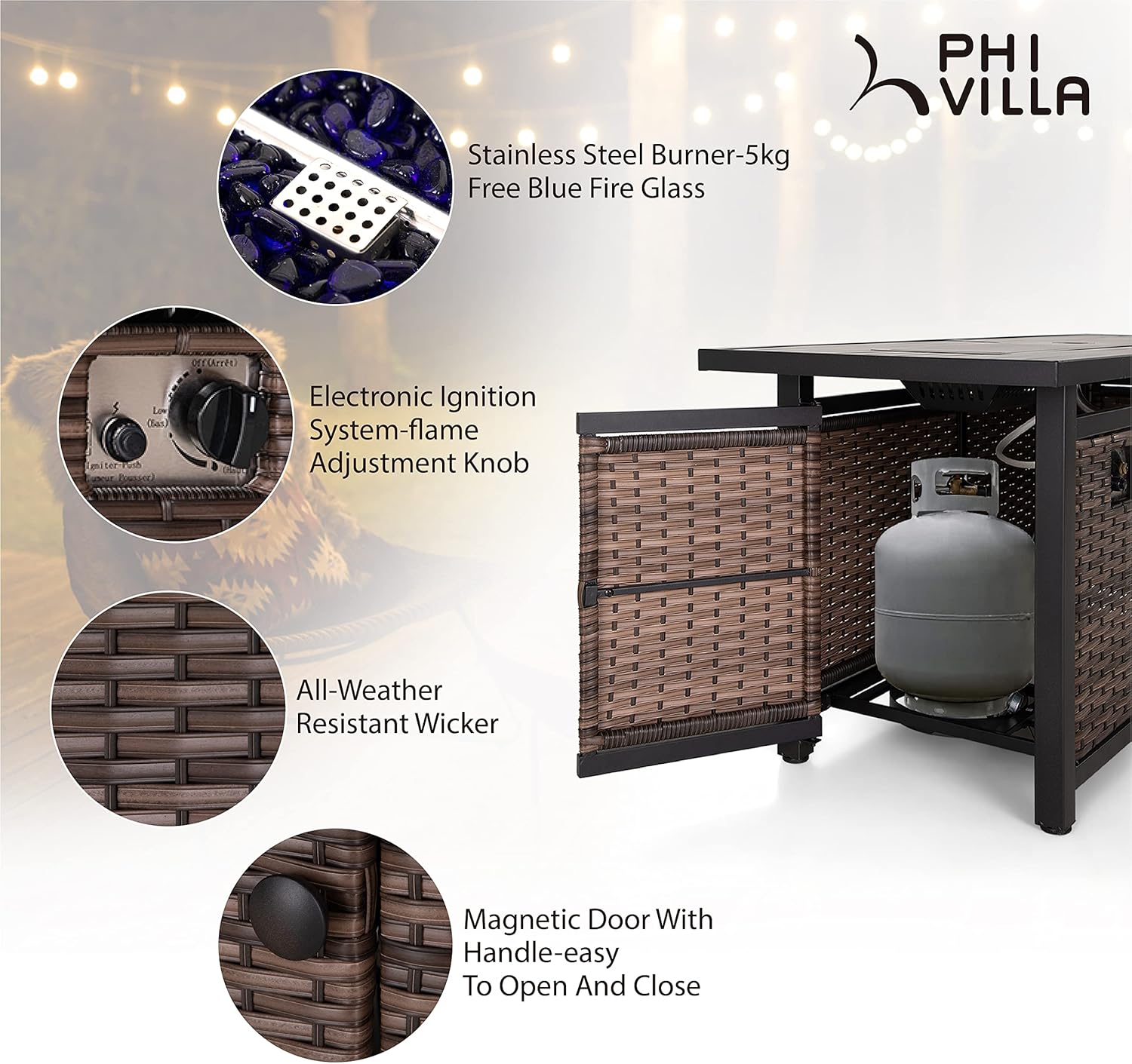 PHI VILLA 7-Piece Patio Furniture Set & 56" Fire Pit Table - 50,000 BTU Propane Gas, Rattan Sofa with Ottoman Wicker Conversation Sets Luxury