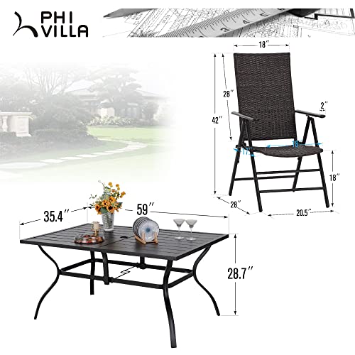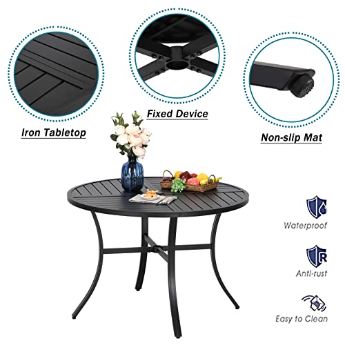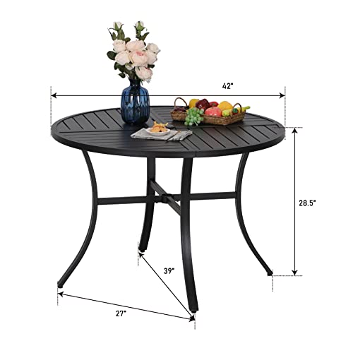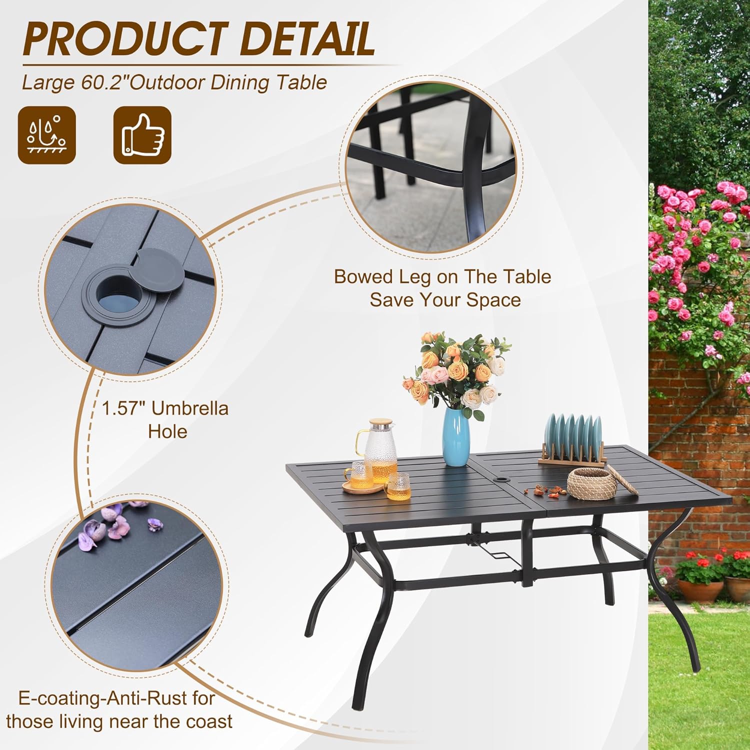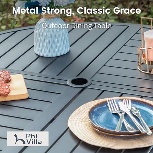 PHI VILLA 4-Person Outdoor Steel Slatted Dining Table with Adjustable Umbrella Hole, Weather-Resistant for Patio Outdoor Use, Black