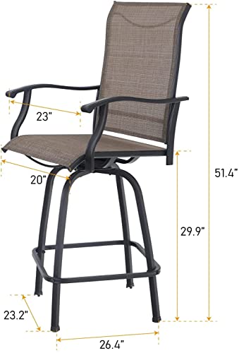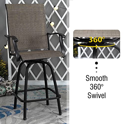 PHI VILLA 2 PCS Outdoor Swivel Bar Stools Bar Height Patio Chair with Breathable Sling Fabric, All Weather Resistant Steel Frame