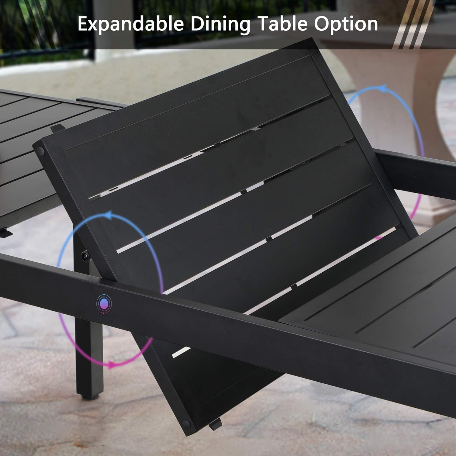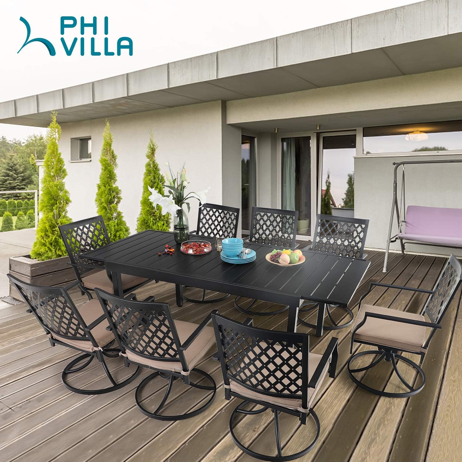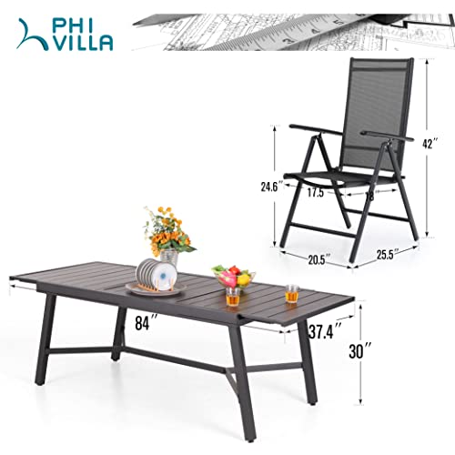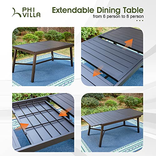 PHI VILLA 7 Piece Outdoor Furniture Dining Set, All-Weather Metal Steel Conversation Set includes 6 Chairs and 1 Extendable Dining Table for Patio Garden Deck