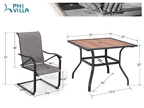 PHI VILLA 7 PCS Patio Outdoor Dining Set,6pcs Spring Rocking Chair & Retro Large Metal Table with E-Coating, Textilene Furniture Set for Porch, Yard, Garden