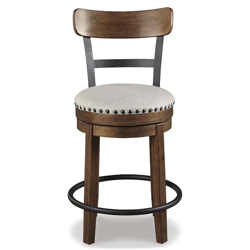 Signature Design by Ashley Valebeck 30.38" Casual Pub Height Upholstered Swivel Barstool, Black