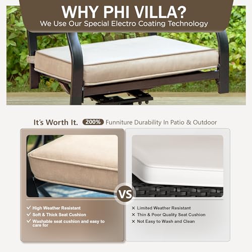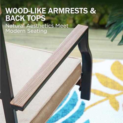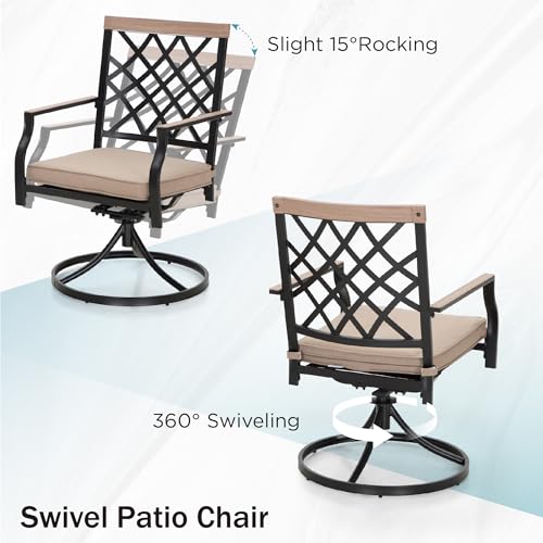 PHI VILLA 2PCS Outdoor Patio Dining Chairs Outdoor, Swivel Rocker Chairs with Wood-Like Armrest & Back Top Outdoor Furniture Chair with Cushion Support 350lbs for Garden, Backyard, Deck