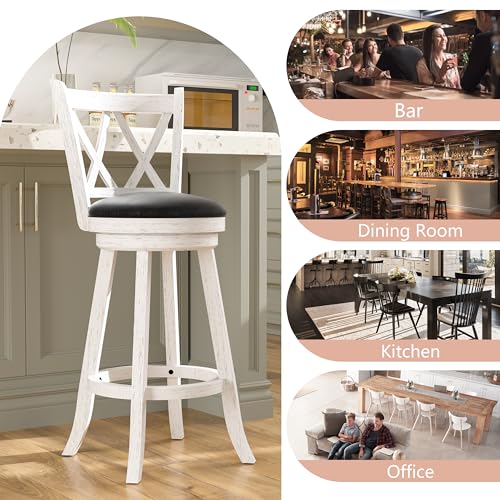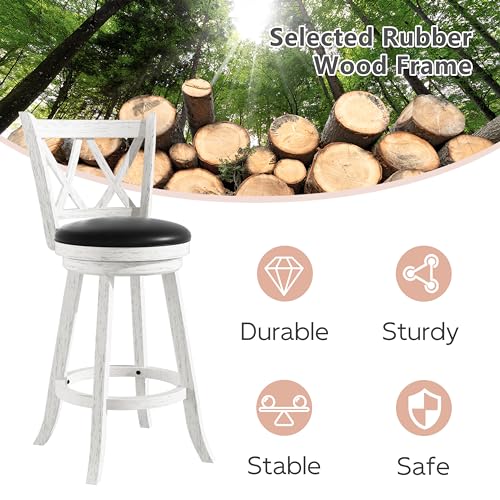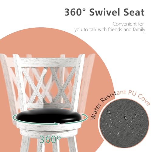 Xilingol Bar Stools with X-Back, Seat Height Counter Height Swivel Barstools with PVC Cushioned Seat, Upholstered 360 Degree Swivel Bar Chair, Footrest & Wood Legs (Grey, 24")