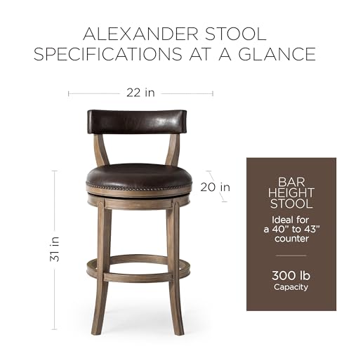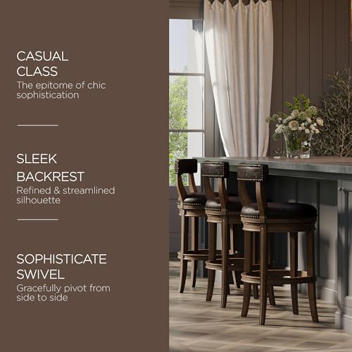 Maven Lane Alexander 26 Inch Tall Counter Height Rotating Low Back Barstool in Walnut Finish with Marksman Saddle Vegan Leather Seat, Set of 4