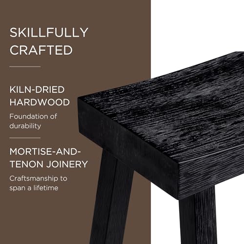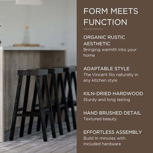 Maven Lane Vincent 31 Inch Tall Bar Height Backless Rectangular Saddle Barstool in Antiqued Brown Finish with Rustic Wood Top Seat, Set of 3