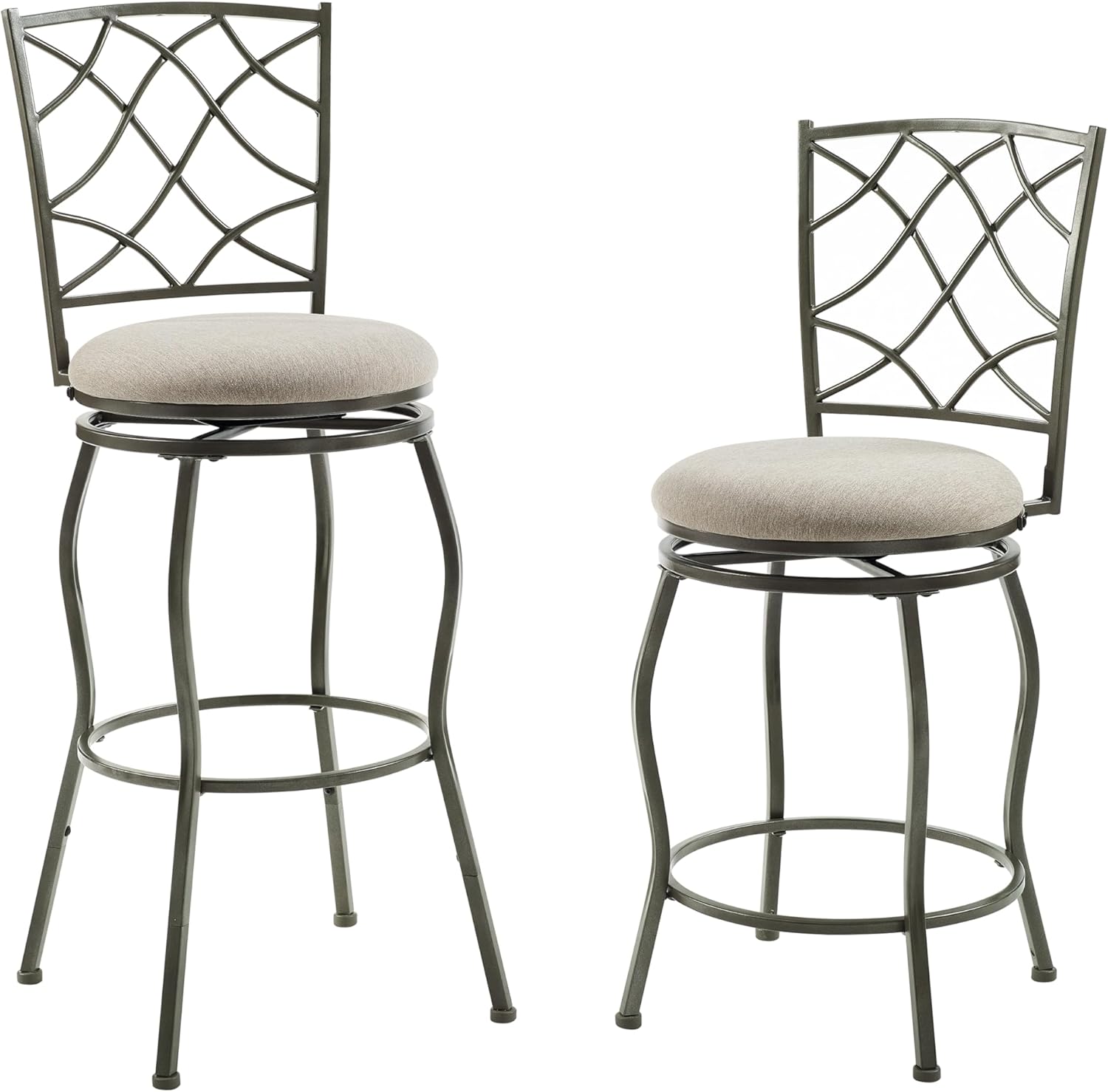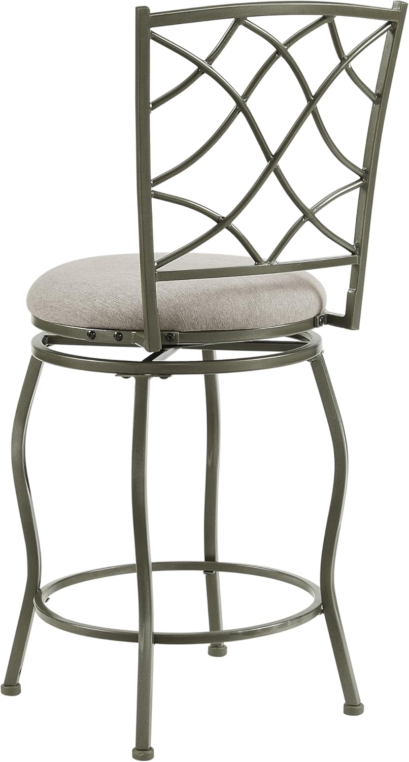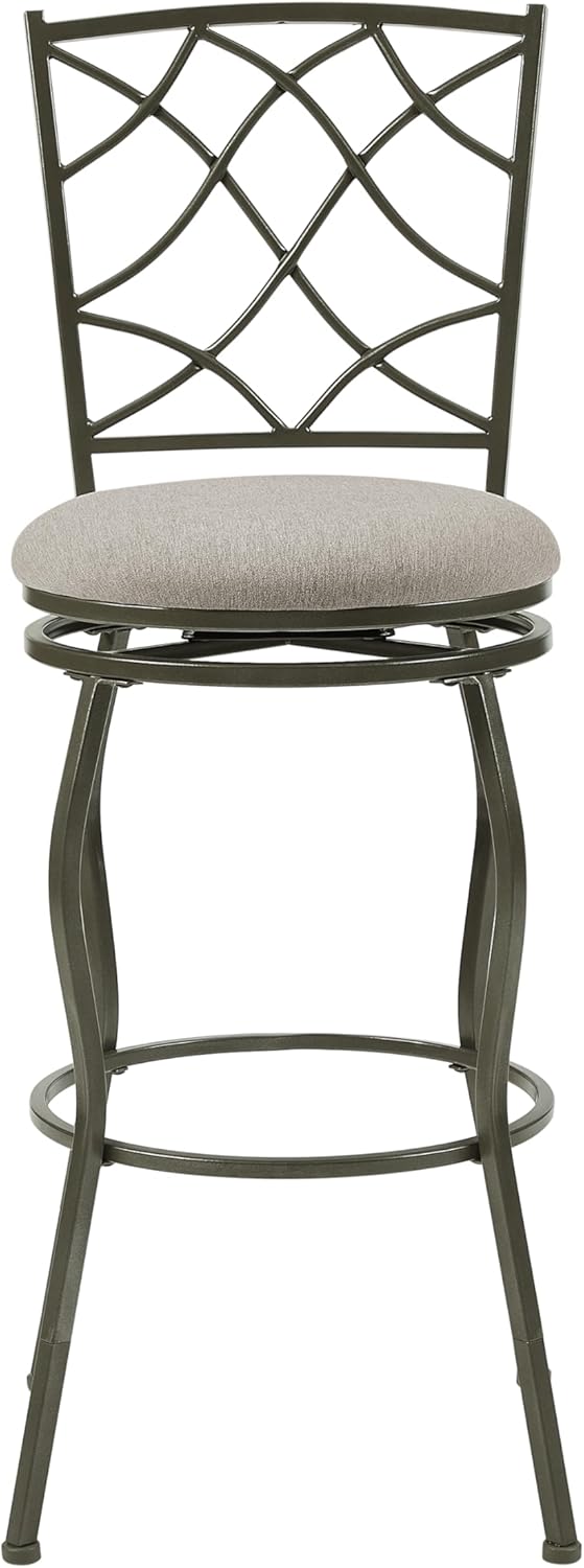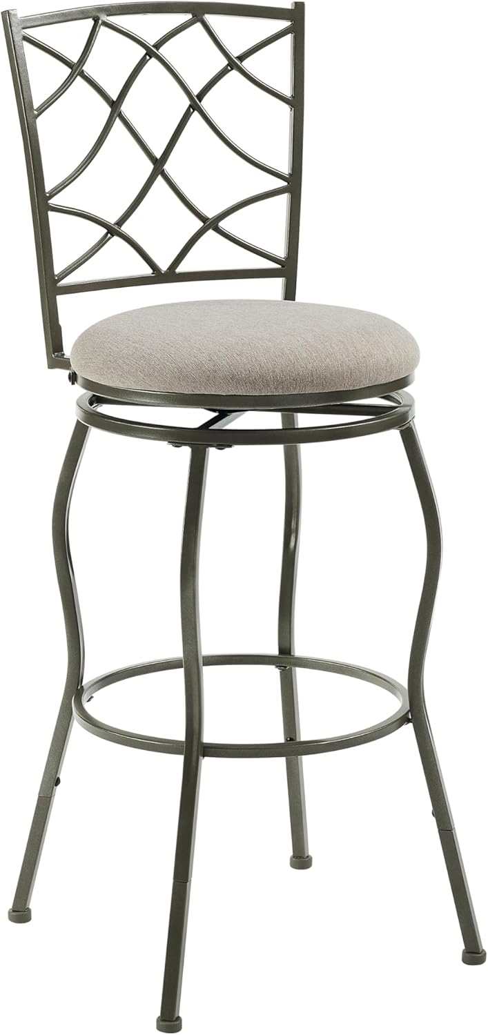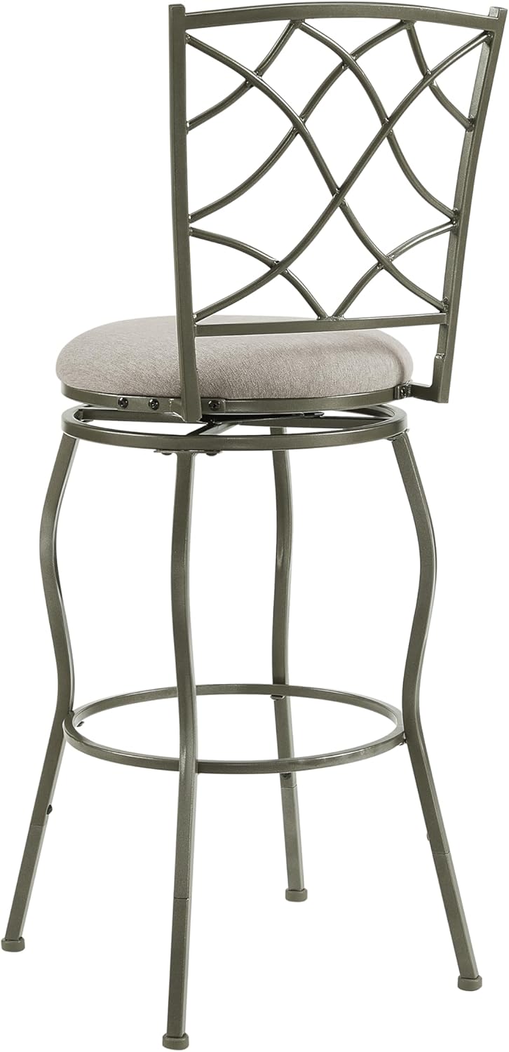 Linon Casey Pewter Metal Adjustable Height Swivel Stools with Beige Upholstered Seats Set of 3