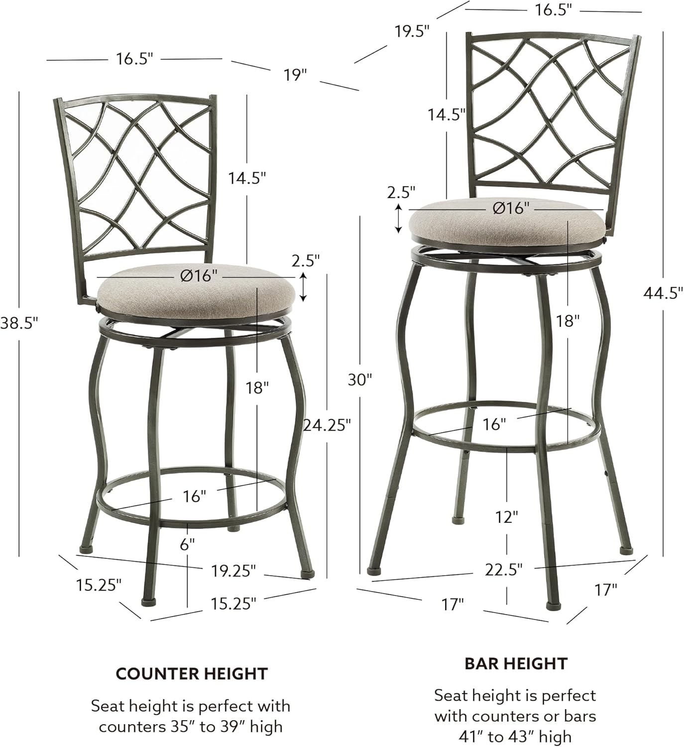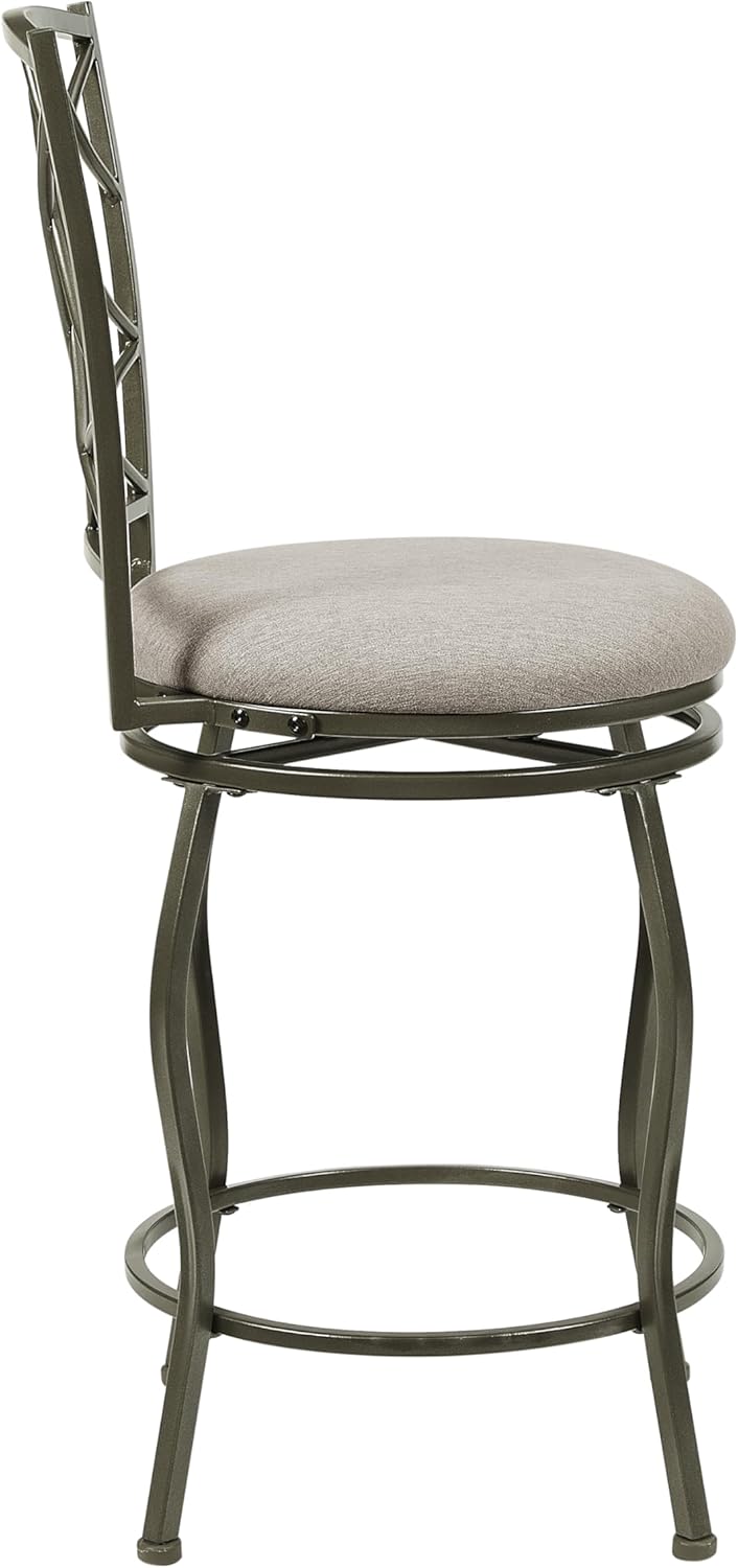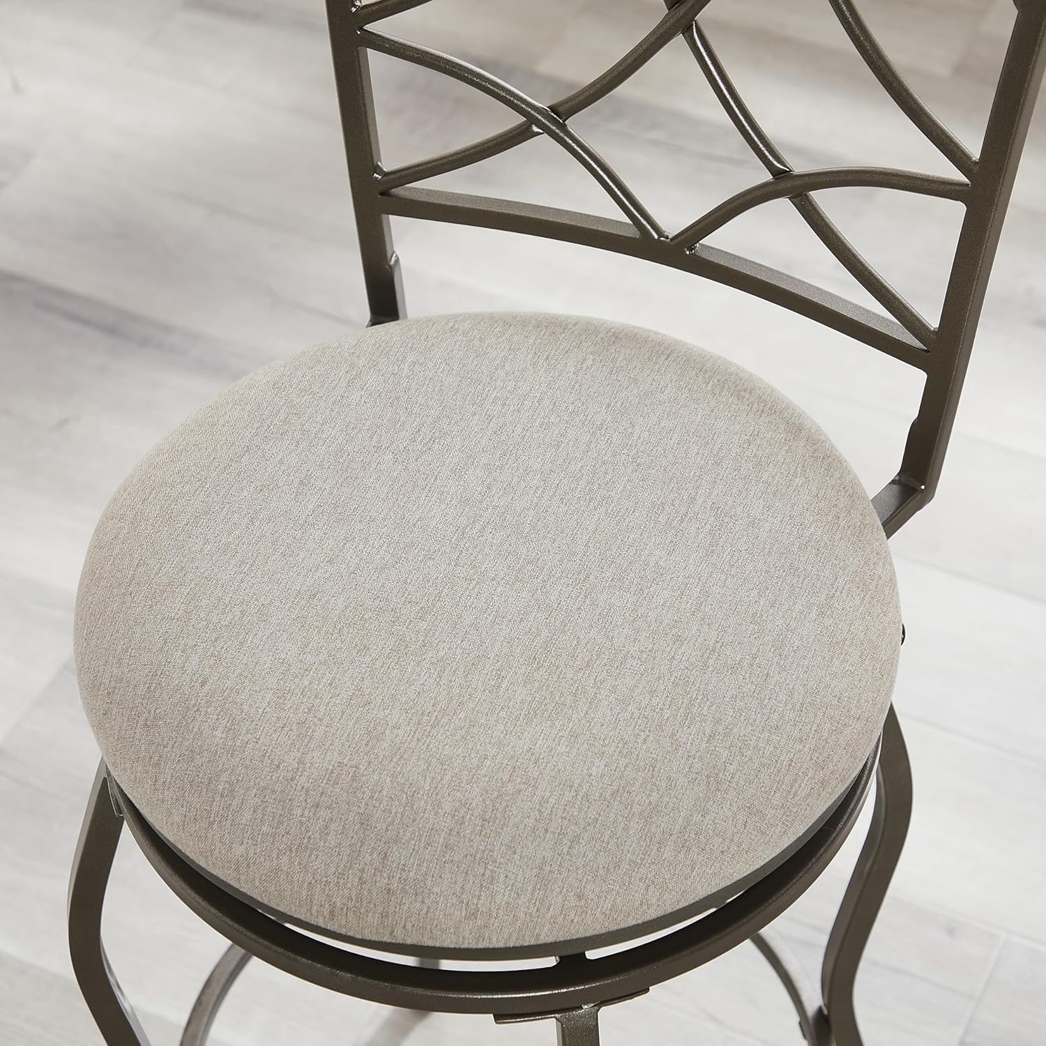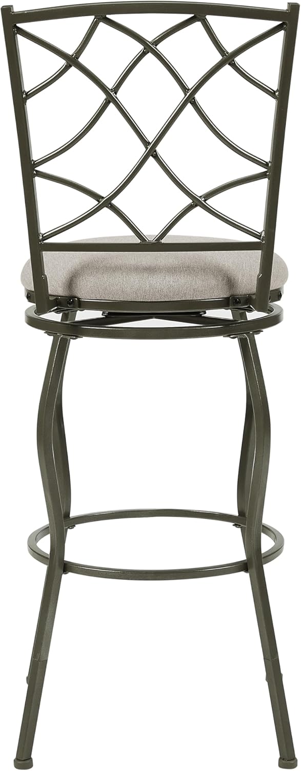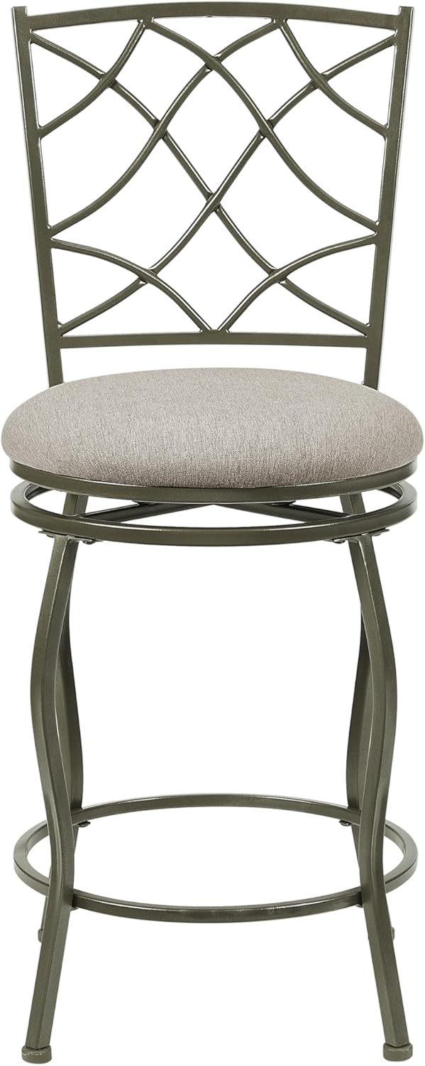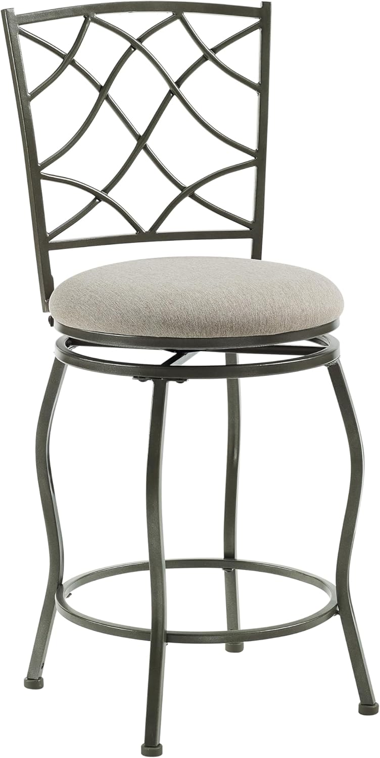 Linon Casey Pewter Metal Adjustable Height Swivel Stools with Beige Upholstered Seats Set of 3