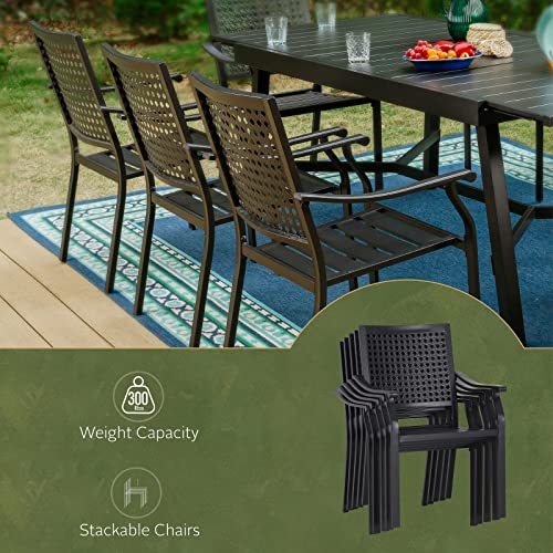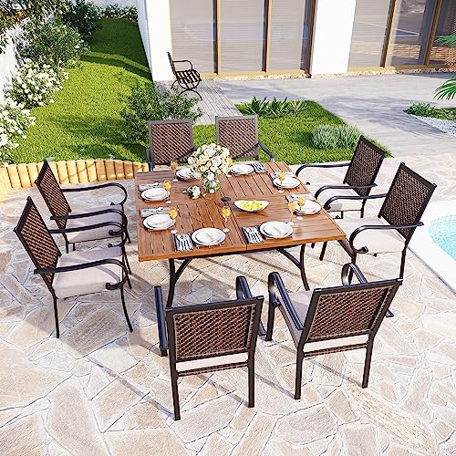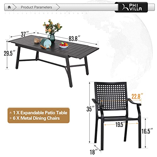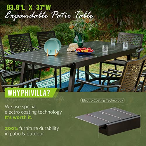 PHI VILLA Outdoor Patio Dining Sets for 8, Metal Expandable Patio Table Furniture Set 9 Piece with 1 Rectangular Extendable Patio Table and 8 Padded Swivel Dining Chairs Supports 300LBS