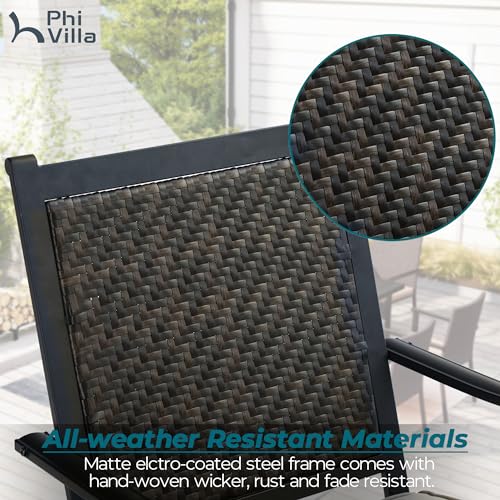 PHI VILLA Outdoor Rattan Dining Chairs Set of 2 Pieces Wicker Swivel Dining Chairs with Cushion for Outside Heavy Duty Wicker Patio Furniture Sets Bistro Chairs for Garden,Backyard,Lawn(2 Pieces)