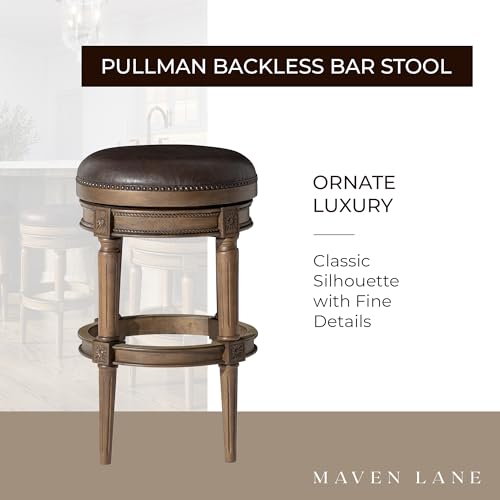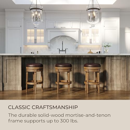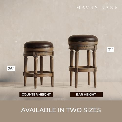 Maven Lane Pullman 26 Inch Tall Counter Height Upholstered Backless Barstool in Reclaimed Oak Finish with Ronan Stone Vegan Leather Seat, Set of 4