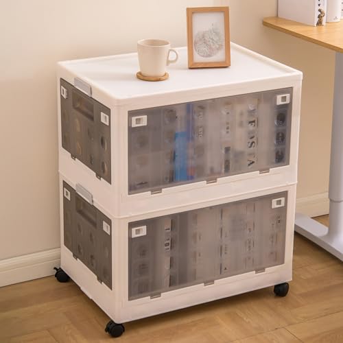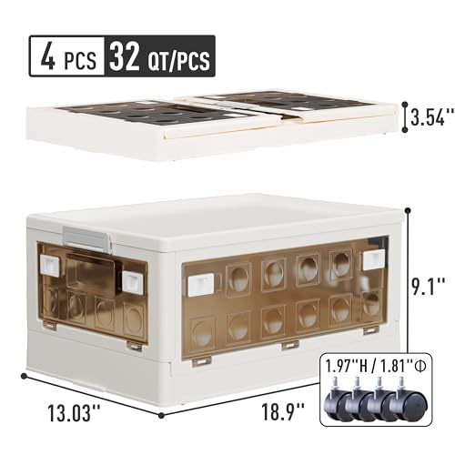 Citylife 77.2 QT 4 Packs Closet Organizers and Storage Collapsible Plastic Storage Bins with Lids Stackable Storage Containers with Wheels and Door Storage Box for Clothing, Blankets, Toys