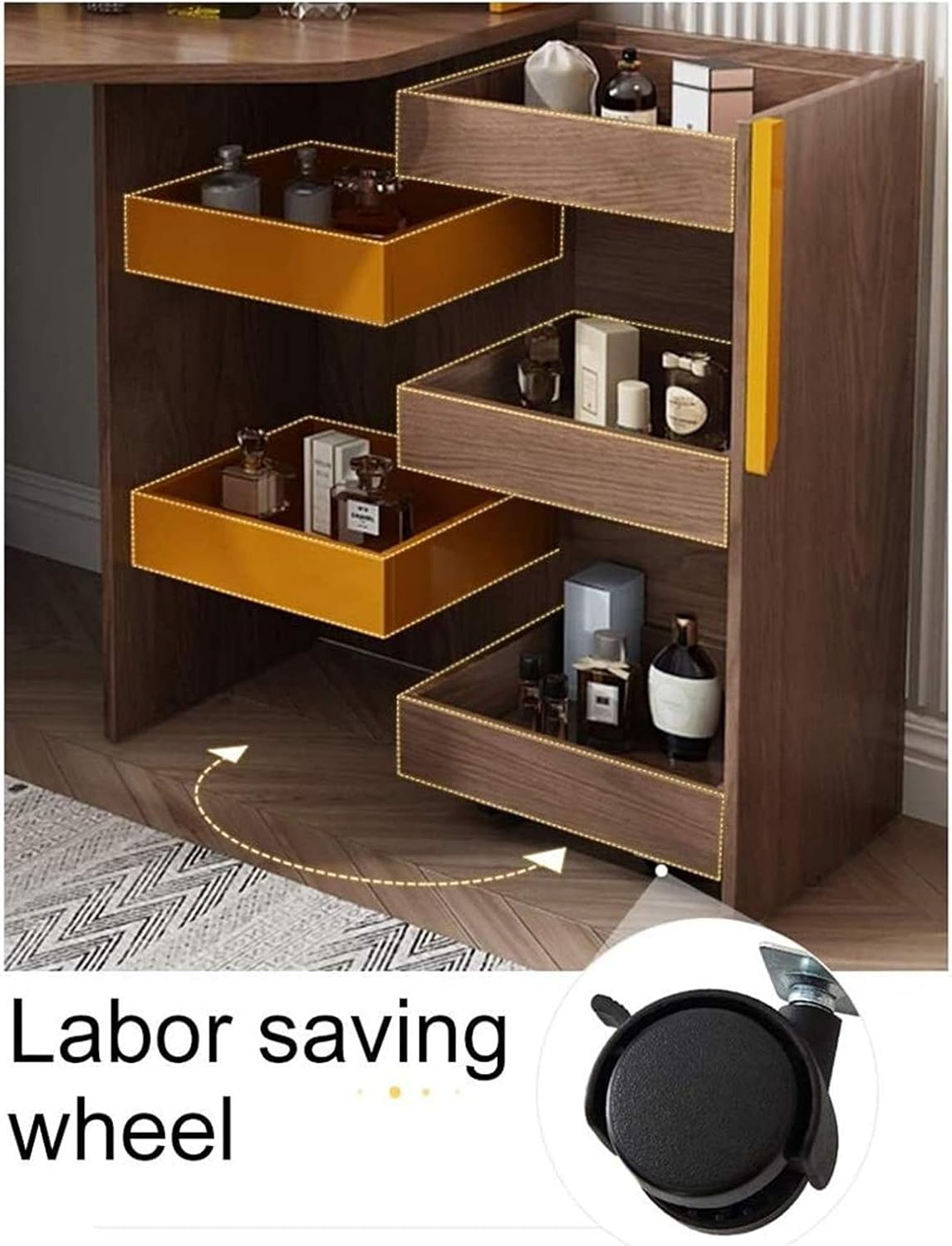 Vanity Living Bedroom Dressing Tables Vanity Makeup Desk Corner Dressing Table with Mirror Vanity Table Set with Stool 7 Drawer for Makeup Bedroom Set Villa Furniture Bedroom Storage (Wood)