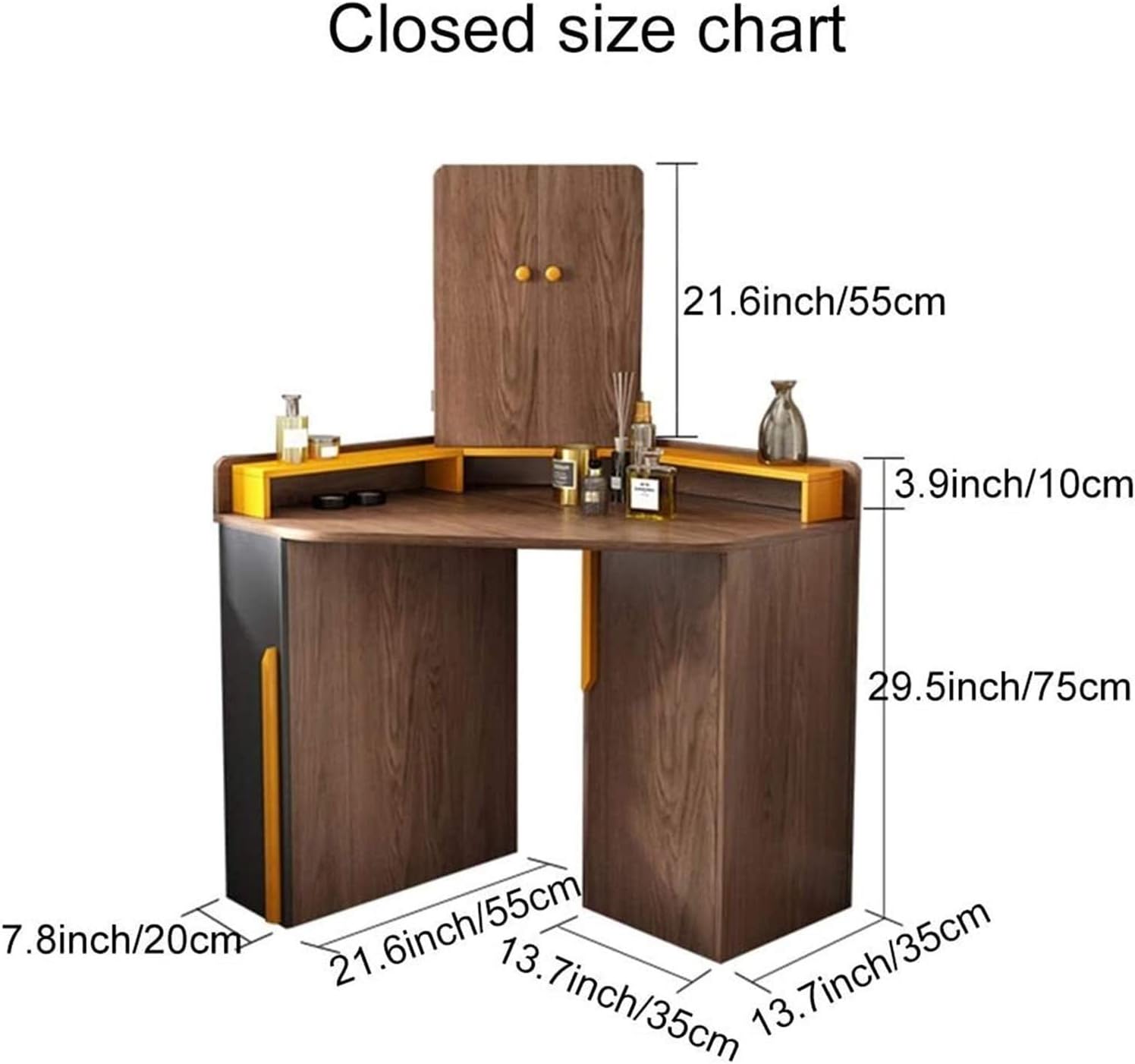 Vanity Living Bedroom Dressing Tables Vanity Desk Corner Dressing Table with Mirror Vanity Table Set with Stool 7 Drawer for Bedroom Set Villa Furniture Bedroom Storage (Color : Brown) (Brown)