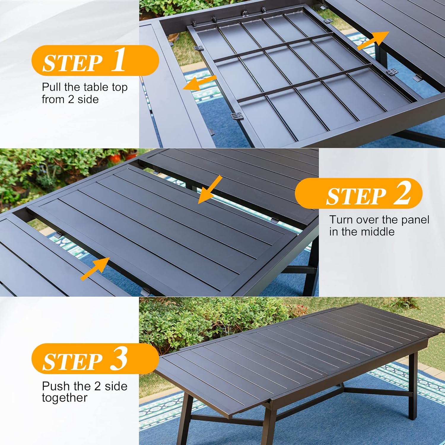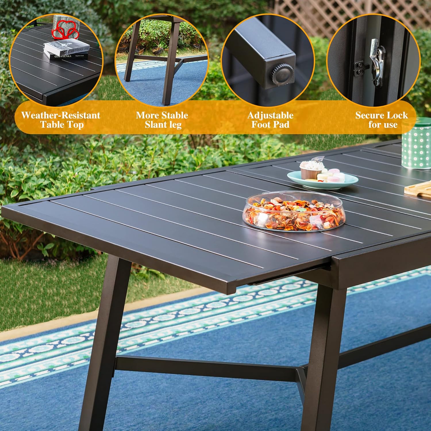 PHI VILLA Outdoor Table and Chairs Patio Furniture Set Outdoor Furniture 7 Pieces, 4 x Patio Dining Chairs, 2 x Swivel Chairs, Outdoor Furniture Expandable Dining Table for Patio Lawn Garden Backyard