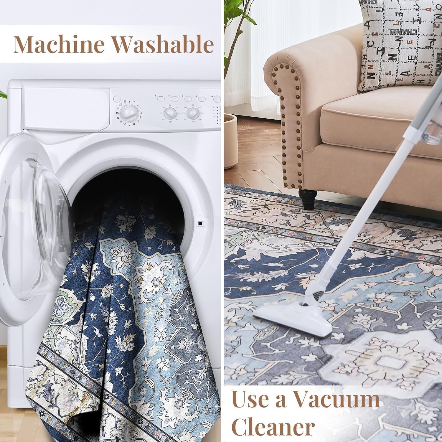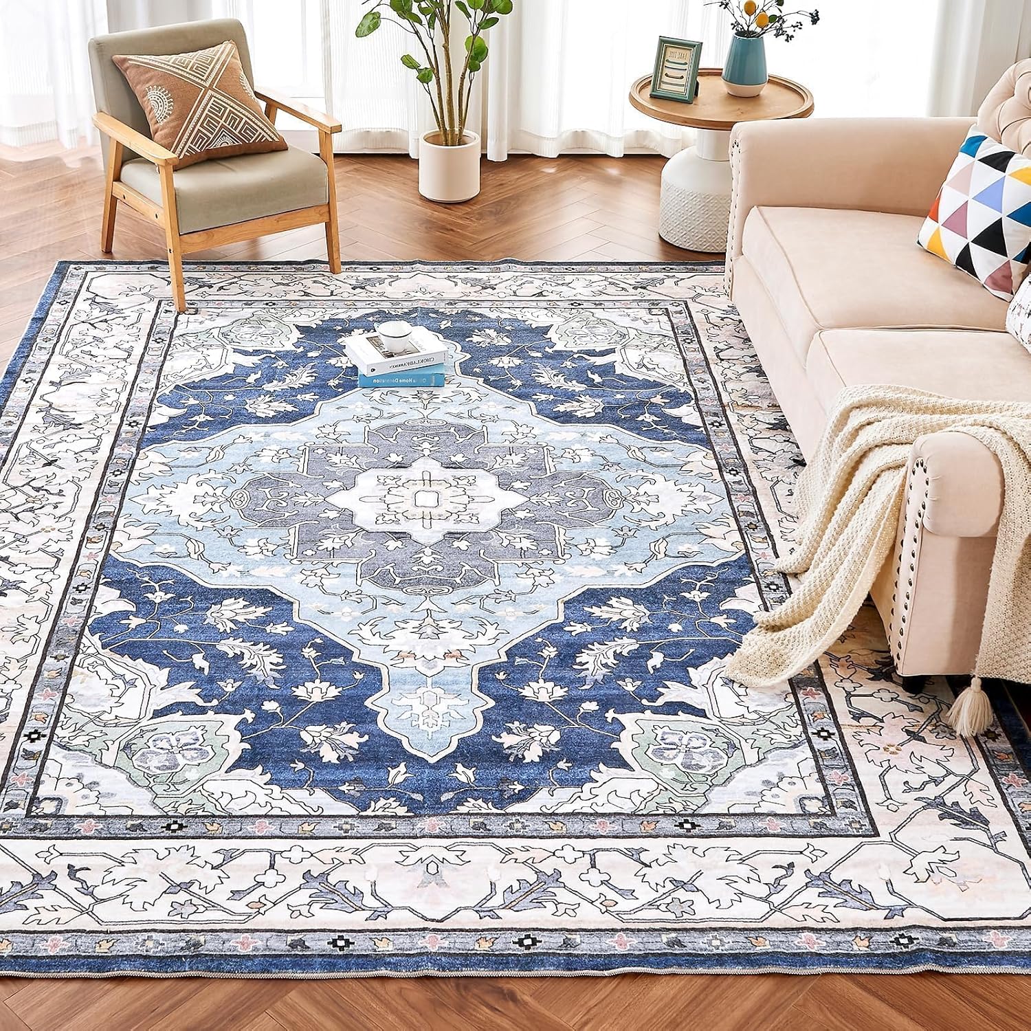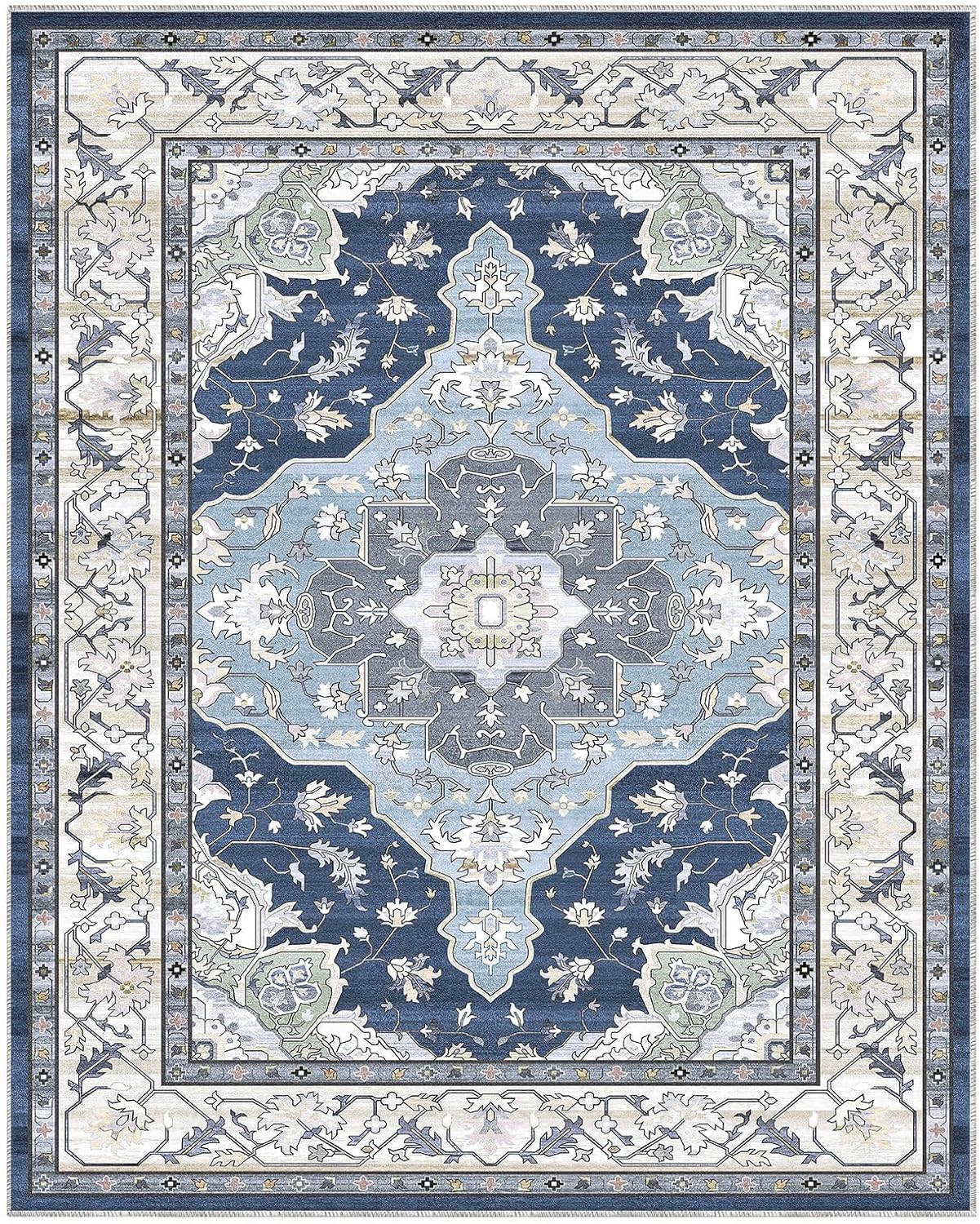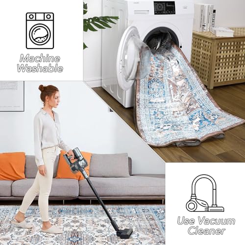ROCYJULIN 8x10 Area Rugs for Living Room, Area Rugs 8x10 for Bedroom, Low-Pile 8x10 Area Rugs with Non-slip TPR Backing, 8 x 10 Large Washable Carpet for High Traffic, Blue & Green