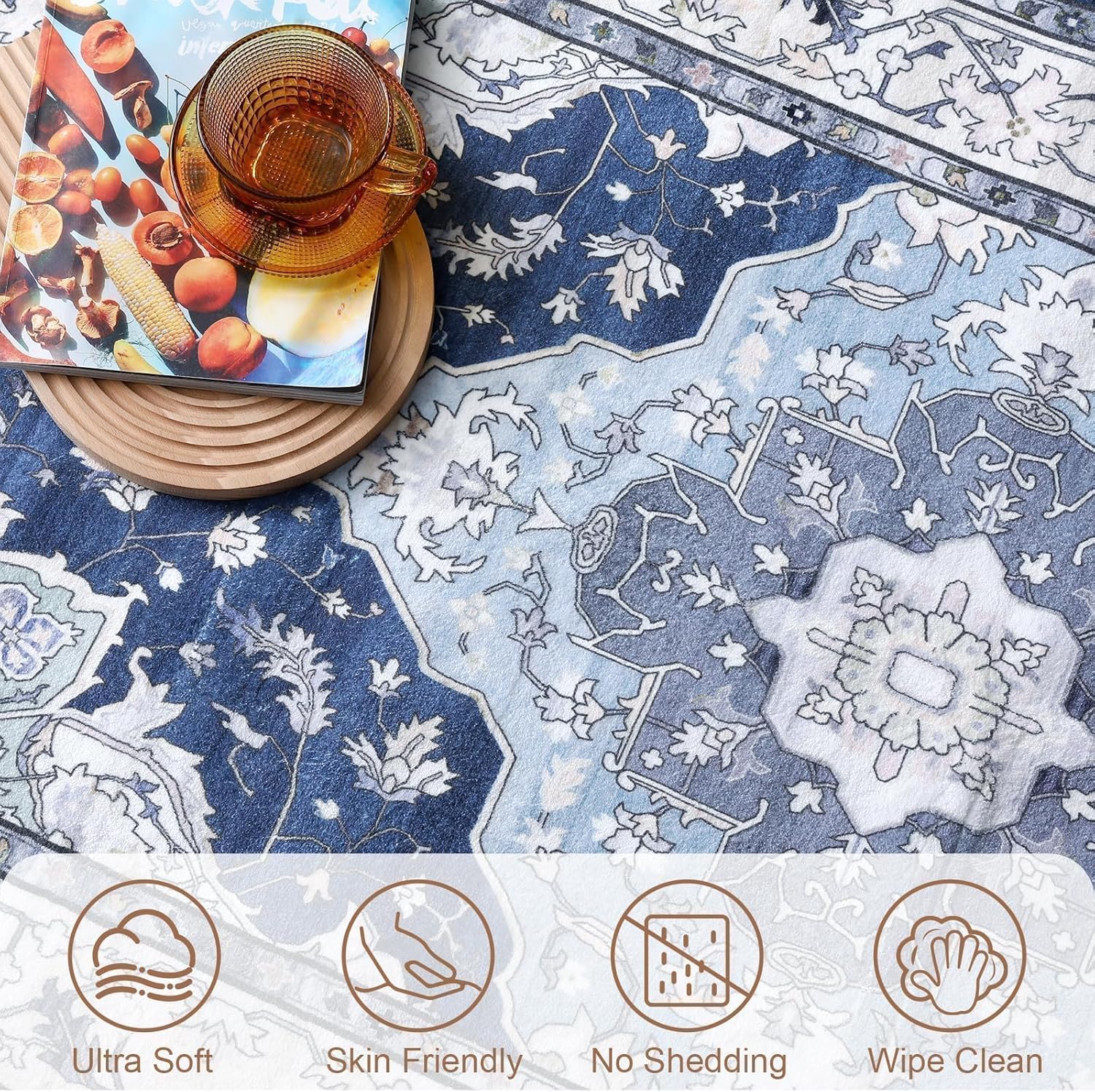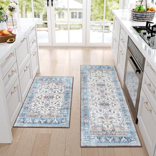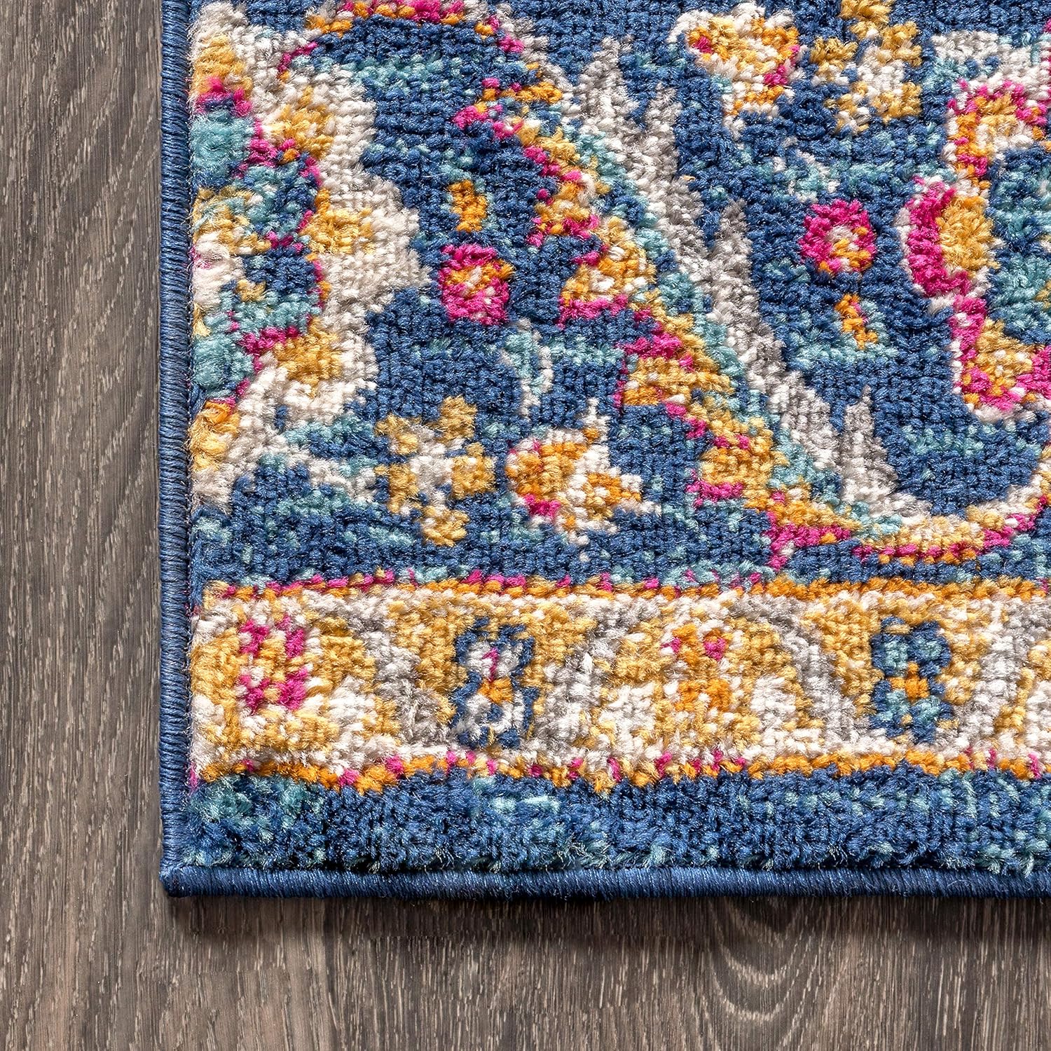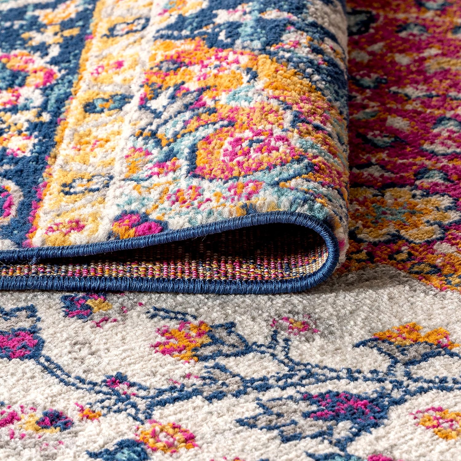 JONATHAN Y BMF106A-220 Bohemian FLAIR Boho Vintage Medallion Indoor Area-Rug, Traditional, Transitional Easy-Cleaning,Bedroom,Kitchen,Living Room,Non Shedding, Blue/Multi, 2 X 20