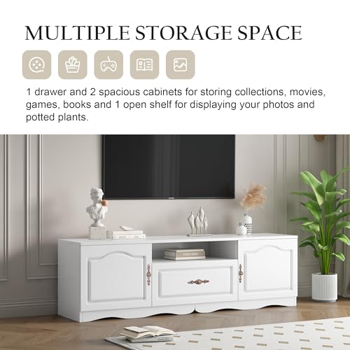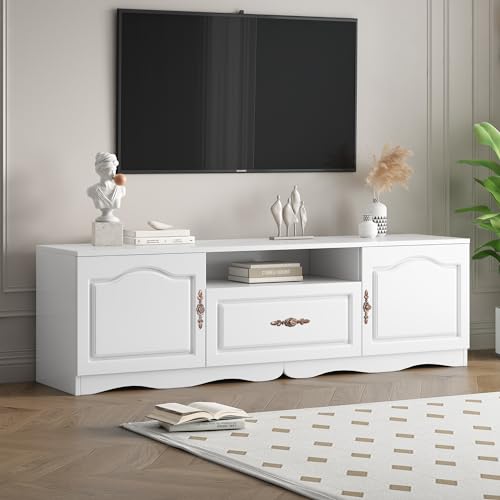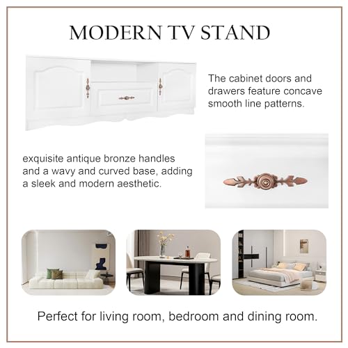 Space-Saving TV Stand Media Entertainment Center with 3 Drawers and Open Shelves, Stylish Television Stand and Media Console for Living Room and Bedroom White